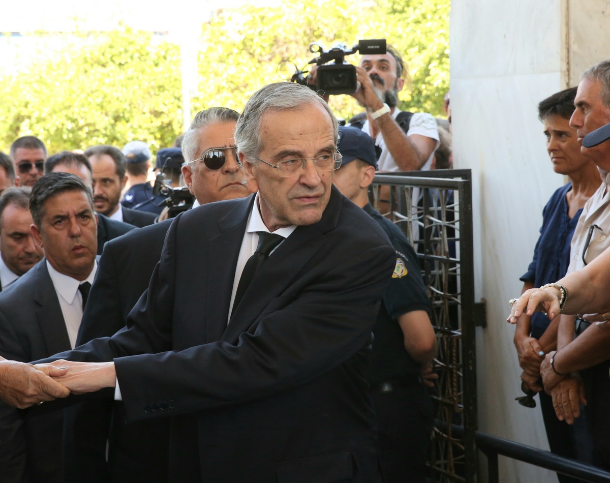 O πρώην πρωθυπουργός Αντώνης Σαμαράς, δέχεται τα συλλυπητήρια του κόσμου, κατά την άφιξή του στην κηδεία της κόρης του Λένας, στο Α’ Νεκροταφείο Αθηνών, Δευτέρα 11 Αυγούστου 2025. ΑΠΕ-ΜΠΕ/ΟΡΕΣΤΗΣ ΠΑΝΑΓΙΩΤΟΥ