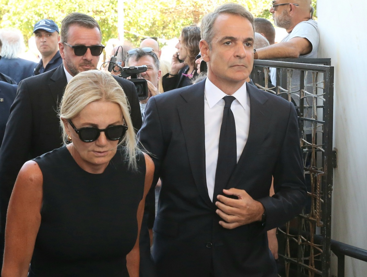Ο πρωθυπουργός Κυριάκος Μητσοτάκης και η σύζυγός του Μαρέβα Γκραμπόφσκι-Μητσοτάκη, προσέρχονται για την κηδεία της κόρης του πρώην πρωθυπουργού, Αντώνη Σαμαρά, Λένας, στο Α’ Νεκροταφείο Αθηνών, Δευτέρα 11 Αυγούστου 2025. ΑΠΕ-ΜΠΕ/ΟΡΕΣΤΗΣ ΠΑΝΑΓΙΩΤΟΥ