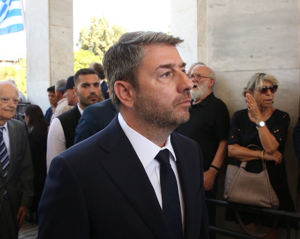 Ο πρόεδρος του ΠΑΣΟΚ-ΚΙΝΑΛ, Νίκος Ανδρουλάκης, προσέρχεται για την κηδεία της κόρης του πρώην πρωθυπουργού, Αντώνη Σαμαρά, Λένας, στο Α’ Νεκροταφείο Αθηνών, Δευτέρα 11 Αυγούστου 2025. ΑΠΕ-ΜΠΕ/ΟΡΕΣΤΗΣ ΠΑΝΑΓΙΩΤΟΥ