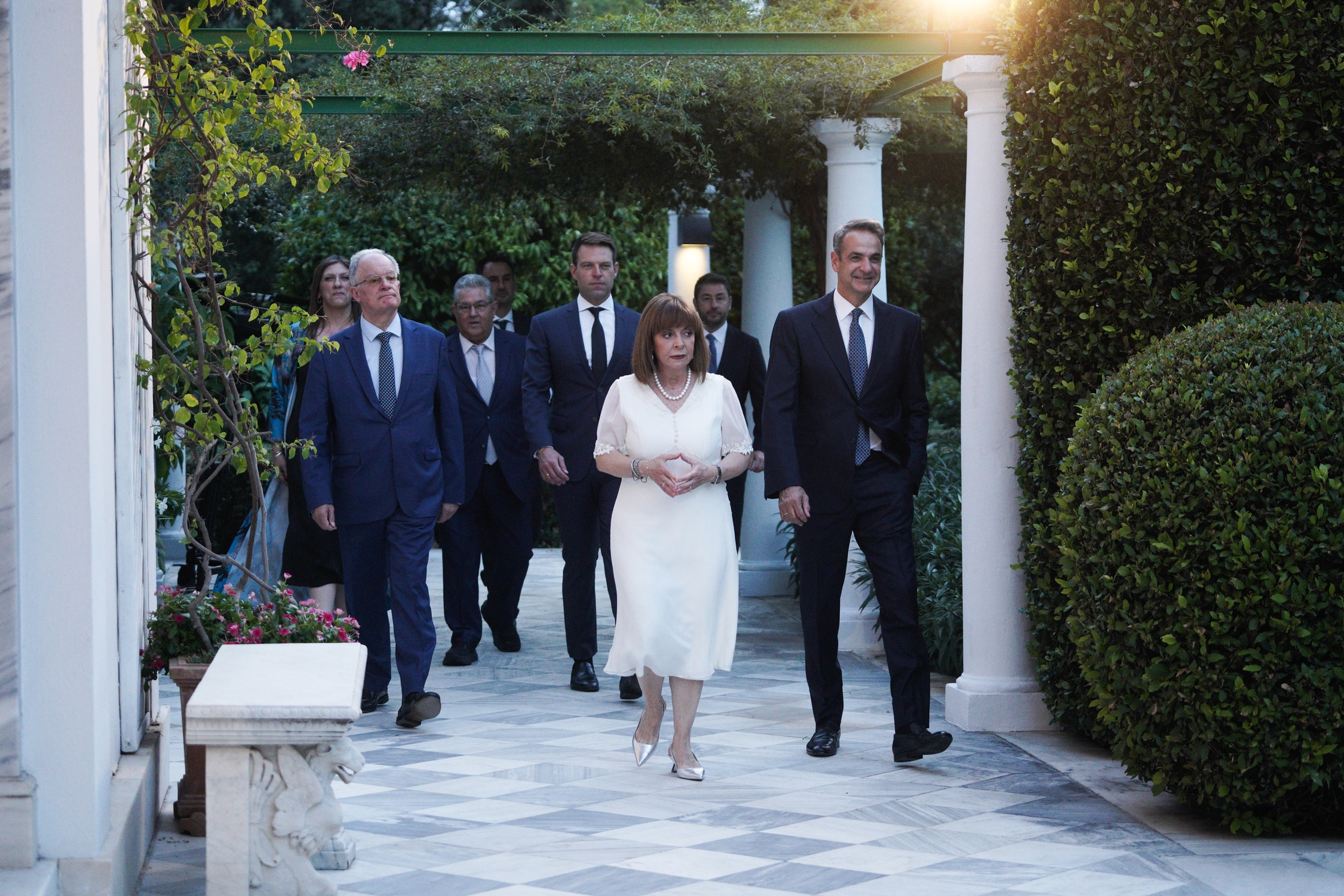 Από την πλευρά της, η πρόεδρος της Δημοκρατίας Κατερίνα Σακελλαροπούλου μιλώντας με δημοσιογράφους ερωτήθηκε για το ενδεχόμενο νέας θητείας της στο ανώτατο πολιτειακό αξίωμα και απάντησε λέγοντας «δεν αποφασίζω εγώ. Είναι αυτό που λέμε στα Νομικά, αλυσιτελώς με ρωτάτε». Ωστόσο, αναφέρθηκε στην προσπάθειά της από την πρώτη στιγμή να ανοίξει την Προεδρία στην κοινωνία και μίλησε για την μεγάλη ανταπόκριση των πολιτών στην εκδήλωση της περασμένης Κυριακής στον κήπο του Προεδρικού Μεγάρου, με αφορμή τα 50 χρόνια από την αποκατάσταση της Δημοκρατίας.