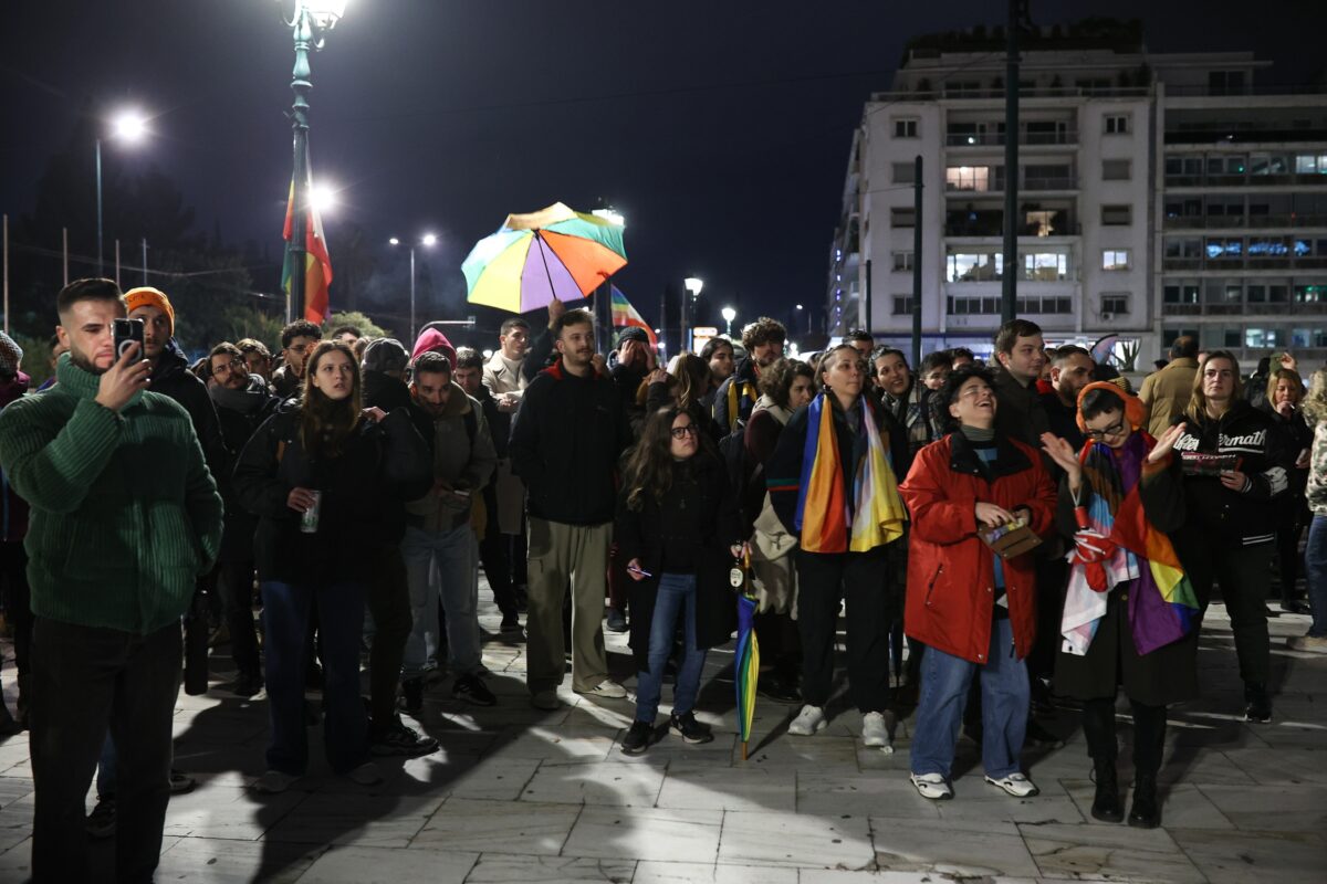 Υψώνοντας πολύχρωμες σημαίες, μέλη της queer κοινότητας και σύμμαχοι αυτής βρέθηκαν στο Σύνταγμα, παρακολουθώντας από οθόνη τη διαδικασία στη Βουλή, αναμένοντας στο τέλος της ψηφοφορίας να πανηγυρίσουν για αυτή τη νίκη, η οποία έρχεται μετά από μεγάλους, δύσκολους, επίμονους και επίπονους πολυετείς αγώνες.