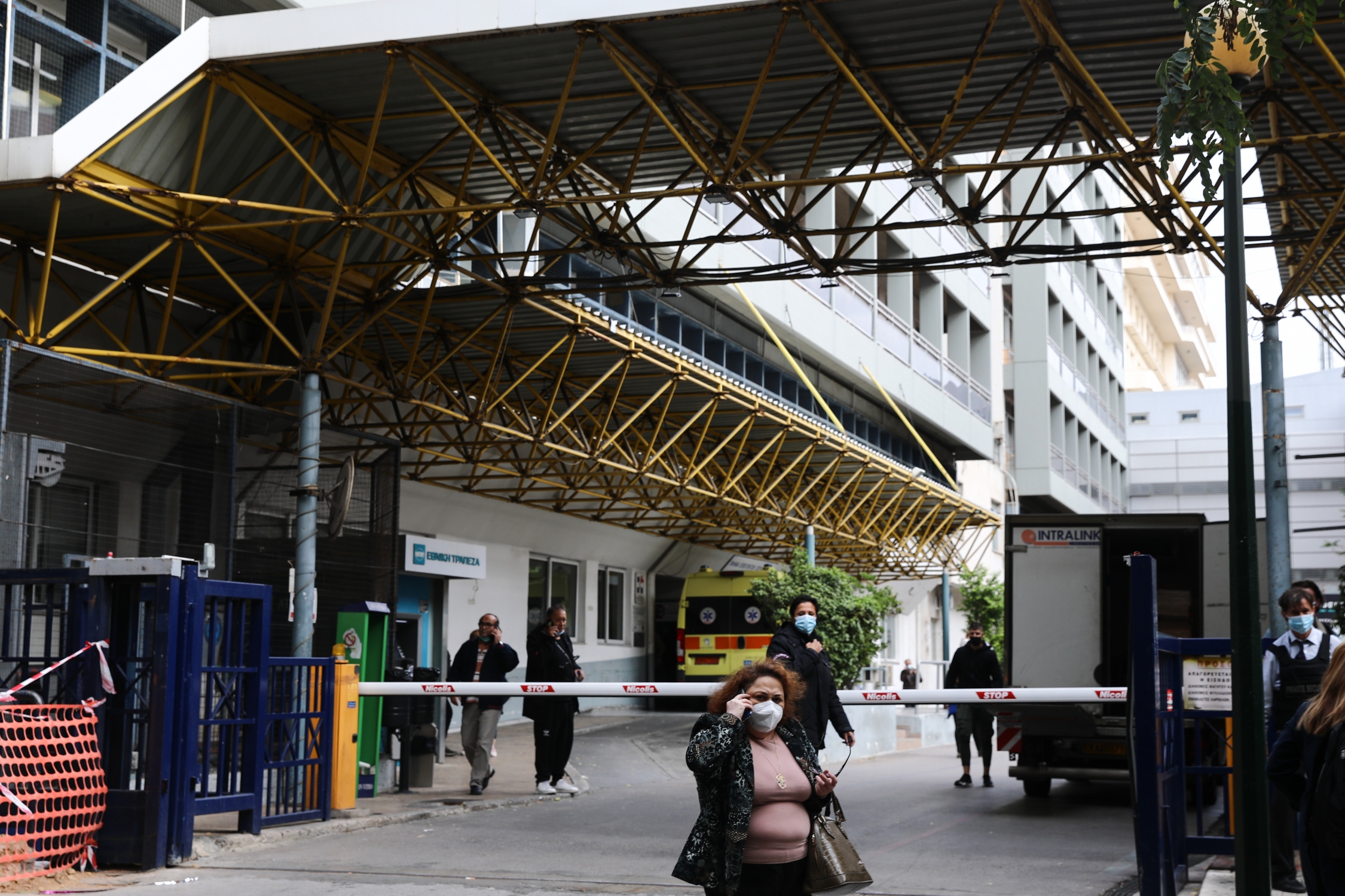 Τηλεοπτικά συνεργεία έξω από το Νοσοκομείο "Ευαγγελισμός" μετά την ανακοίνωση του θανάτου της προέδρου του ΚΙΝΑΛ, Φώφης Γεννηματά,απο καρκίνο, στην Αθήνα, στις 25 Οκτωβρίου, 2021