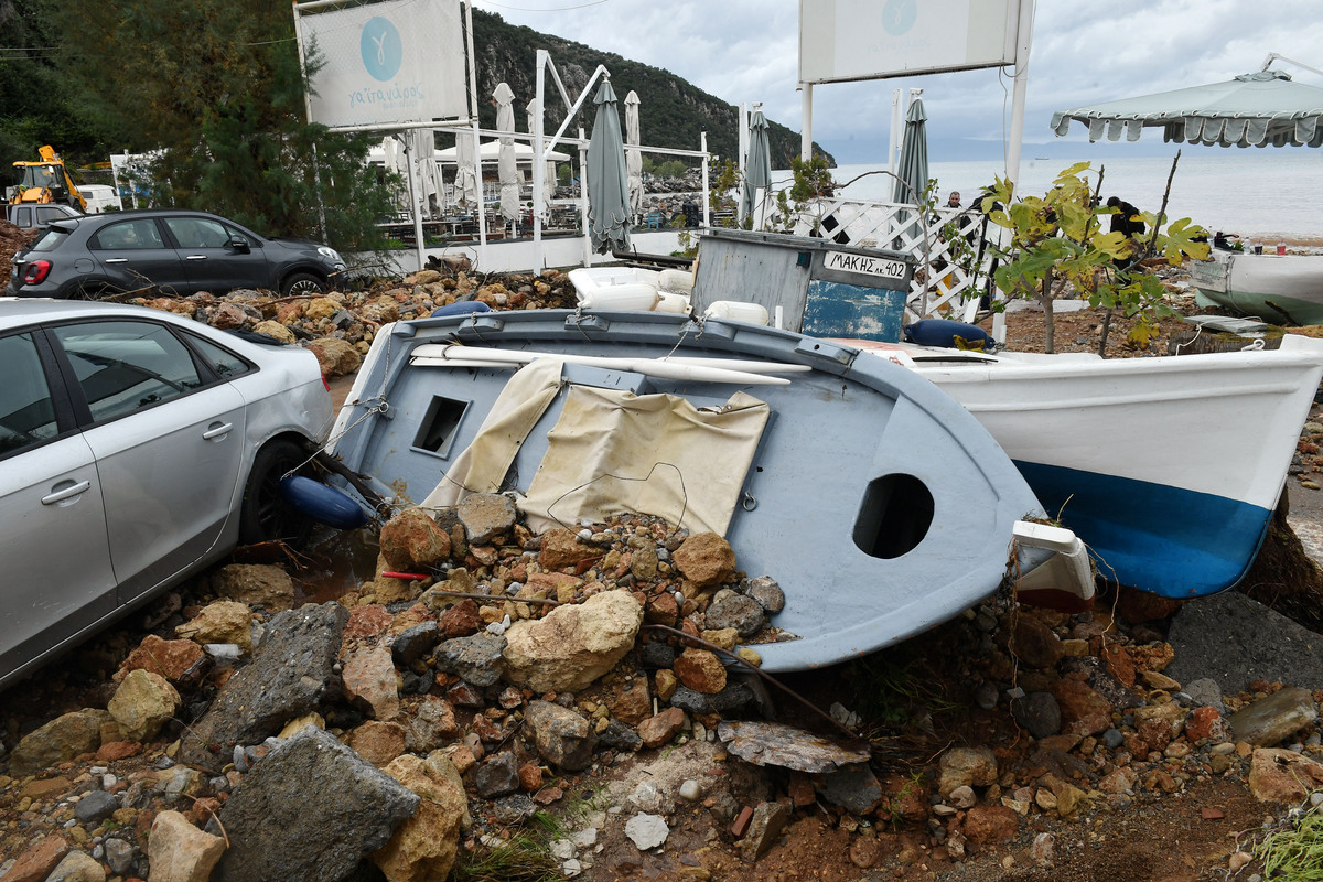 Σύμφωνα με πληροφορίες, από τους όγκους των χωμάτων παρασύρθηκαν αυτοκίνητα και βάρκες, ενώ προκλήθηκαν ζημιές σε παραλιακά καταστήματα.