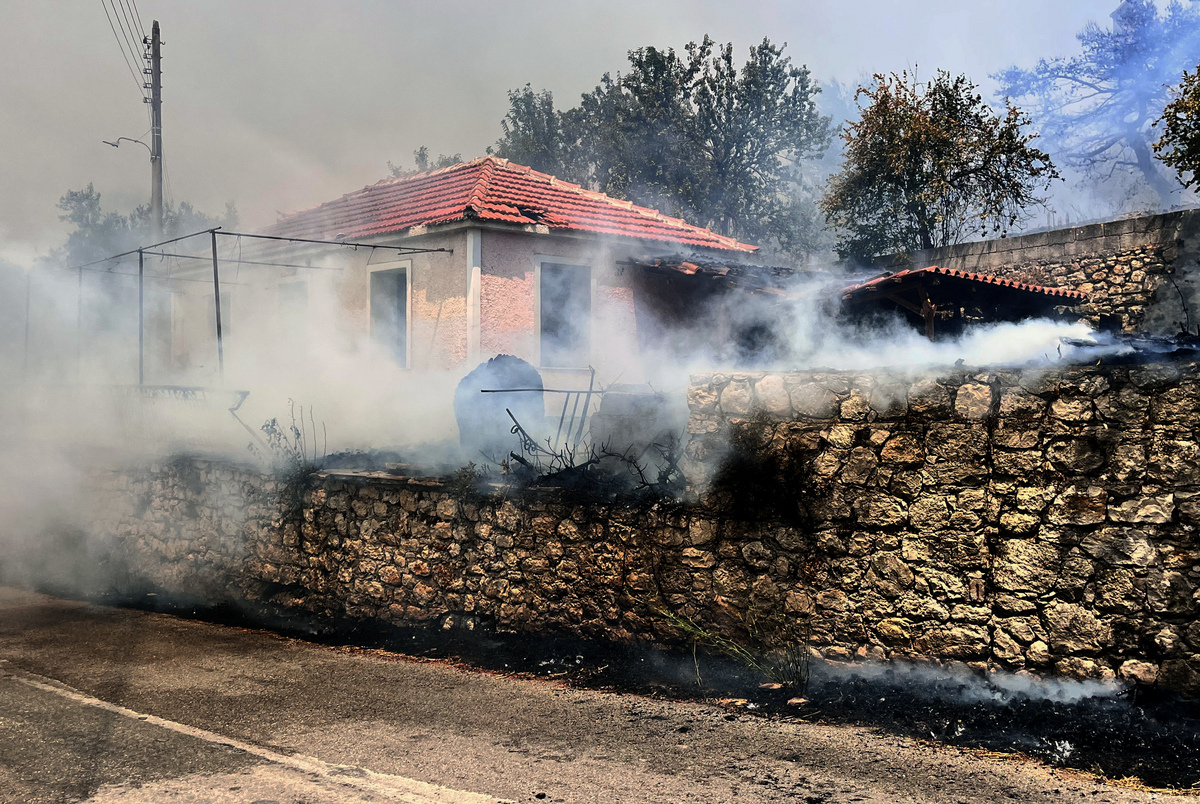 Σπίτι καίγεται κατά τη διάρκεια φωτιάς που ξέσπασε στην κοινότητα Αγαλά στη Ζάκυνθο, Τρίτη 12 Αυγούστου 2025. ΑΠΕ-ΜΠΕ/ΚΩΣΤΑΣ ΣΥΝΕΤΟΣ
