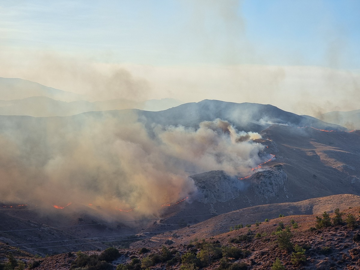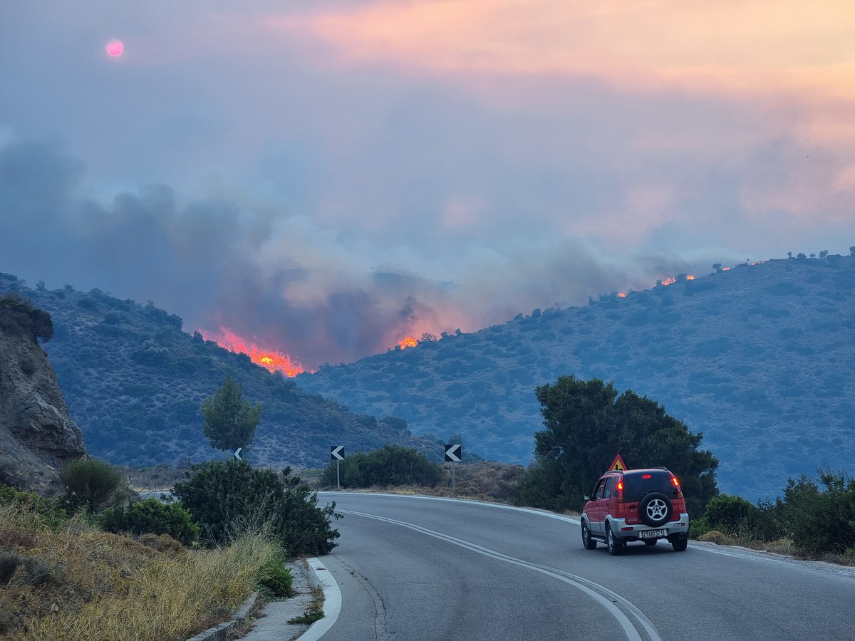 Το μέτωπο ξεπερνά τα 15 με 18 χιλιόμετρα και εκτείνεται από το Κερί, περνά από τον Αγαλά, περνάει πάνω από τη Λιθακιά και φτάνει μέχρι τον Παντοκράτορα. Επιχειρούν και πάλι ένα ελικόπτερο. Η κατάσταση είναι πραγματικά πάρα πολύ δύσκολη.