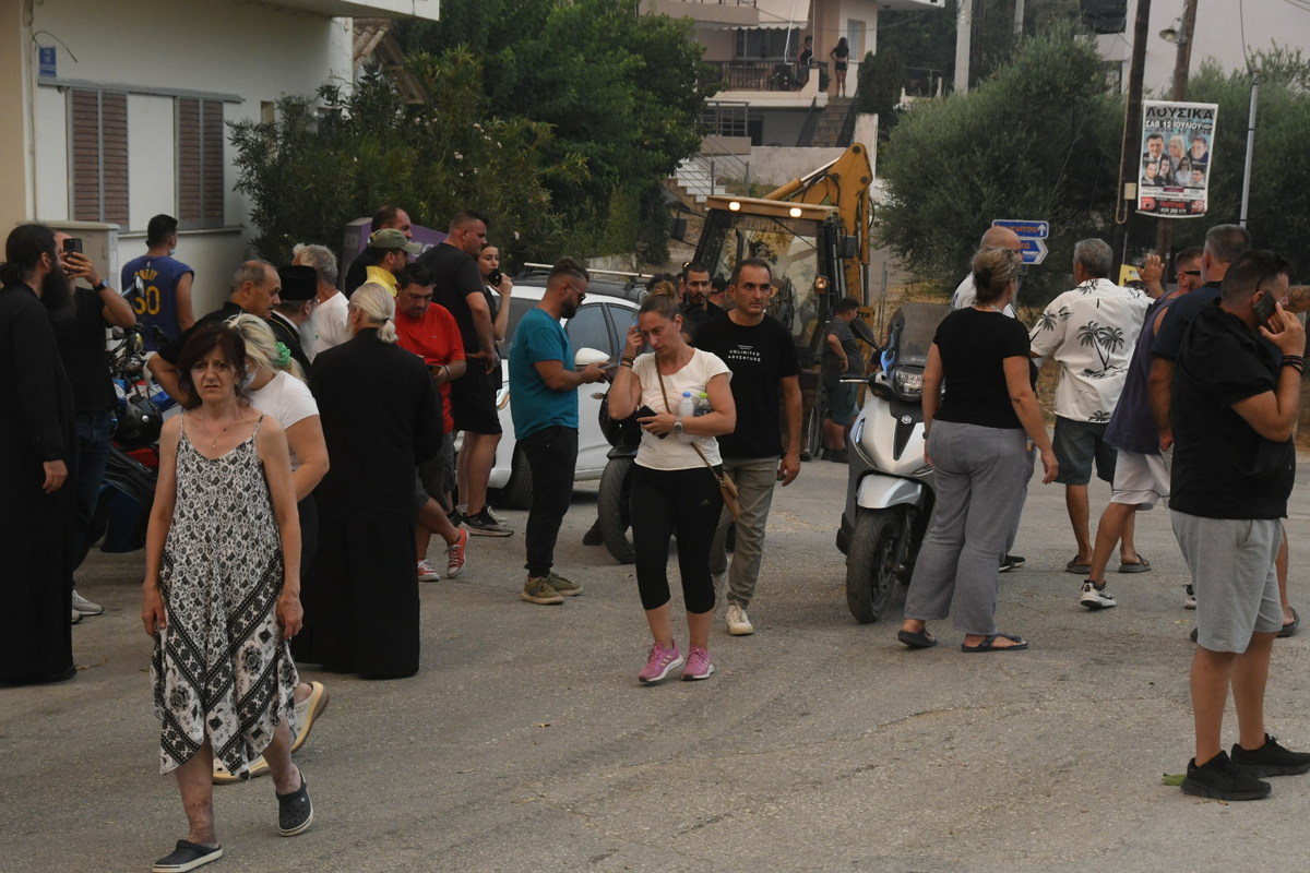 Αρκετοί κάτοικοι, έχουν μείνει στο χωριό εδώ με κουβάδες στα χέρια, με λάστιχα, με οτιδήποτε μπορούν. Μαζεύουν νερό προκειμένου να σβήσουν και τις τελευταίες μικροεστίες. Έρχονται συνεχώς πυροσβεστικά οχήματα τα οποία κινούνται σε όλη αυτή την περιοχή για να σβήνουν και τις τελευταίες εστίες.