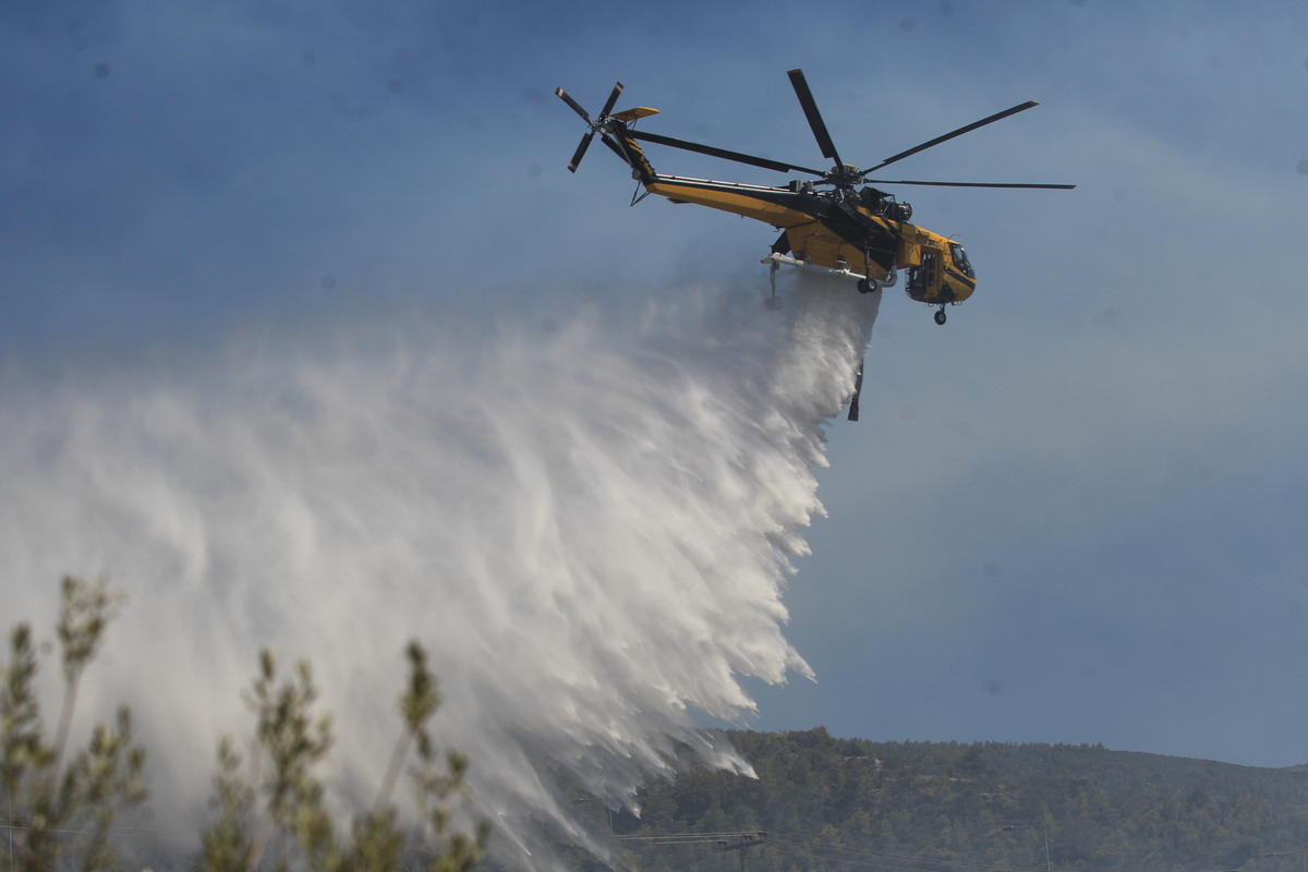 Πυροσβεστικό ελικόπτερο επιχειρεί στην κατάσβεση πυρκαγιάς που έχει ξεσπάσει σε χαμηλή βλάστηση κοντά στην Πολυτεχνειούπολη στο δήμο Ζωγράφου, τη Δευτέρα 28 Ιουλίου 2025. Όπως έγινε γνωστό από την Πυροσβεστική η φωτιά εκδηλώθηκε γύρω στις 14:30 κοντά στην Κατεχάκη και για την κατάσβεσή της κινητοποιήθηκαν 65 πυροσβέστες με 2 ομάδες πεζοπόρων τμημάτων της 1ης ΕΜΟΔΕ, 20 οχήματα, εθελοντές, 7 ελικόπτερα και 6 αεροσκάφη. Συνδρομή παρέχουν υδροφόρες ΟΤΑ. Επιπλέον πριν λίγο προειδοποιητικό μήνυμα εστάλη από το 112 σε κατοίκους της ευρύτερης περιοχής καλώντας τους να παραμείνουν σε ετοιμότητα και να ακολουθήσουν τις οδηγίες των Αρχών. ΑΠΕ-ΜΠΕ/ΑΠΕ-ΜΠΕ/ΑΛΕΞΑΝΔΡΟΣ ΒΛΑΧΟΣ