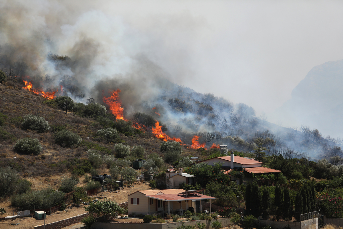 Φωτιά καίει βλάστηση κοντά σε κατοικίες στην Παλαιά Φώκαια Αττικής, Πέμπτη 26 Ιουνίου 2025. Μάχη με τις φλόγες συνεχίζουν να δίνουν οι πυροσβεστικές δυνάμεις στην πυρκαγιά που ξέσπασε λίγο μετά τις 12:30 σε χαμηλή βλάστηση ανάμεσα σε Θυμάρι και Παλαιά Φώκαια Αττικής. Όπως έγινε γνωστό από την Πυροσβεστική η φωτιά εκδηλώθηκε ανάμεσα σε κατοικίες με αποτέλεσμα να υπάρχουν αναφορές για καμένα σπίτια. Για τον λόγο αυτό τρία μηνύματα μέσω του 112 εστάλησαν σε κατοίκους προκειμένου να απομακρυνθούν από τις περιοχές Θυμάρι, Τουρκολίμανο, Καταφύγι και Χάρακα. ΑΠΕ-ΜΠΕ/ΑΠΕ-ΜΠΕ/ΓΙΩΡΓΟΣ ΒΙΤΣΑΡΑΣ
