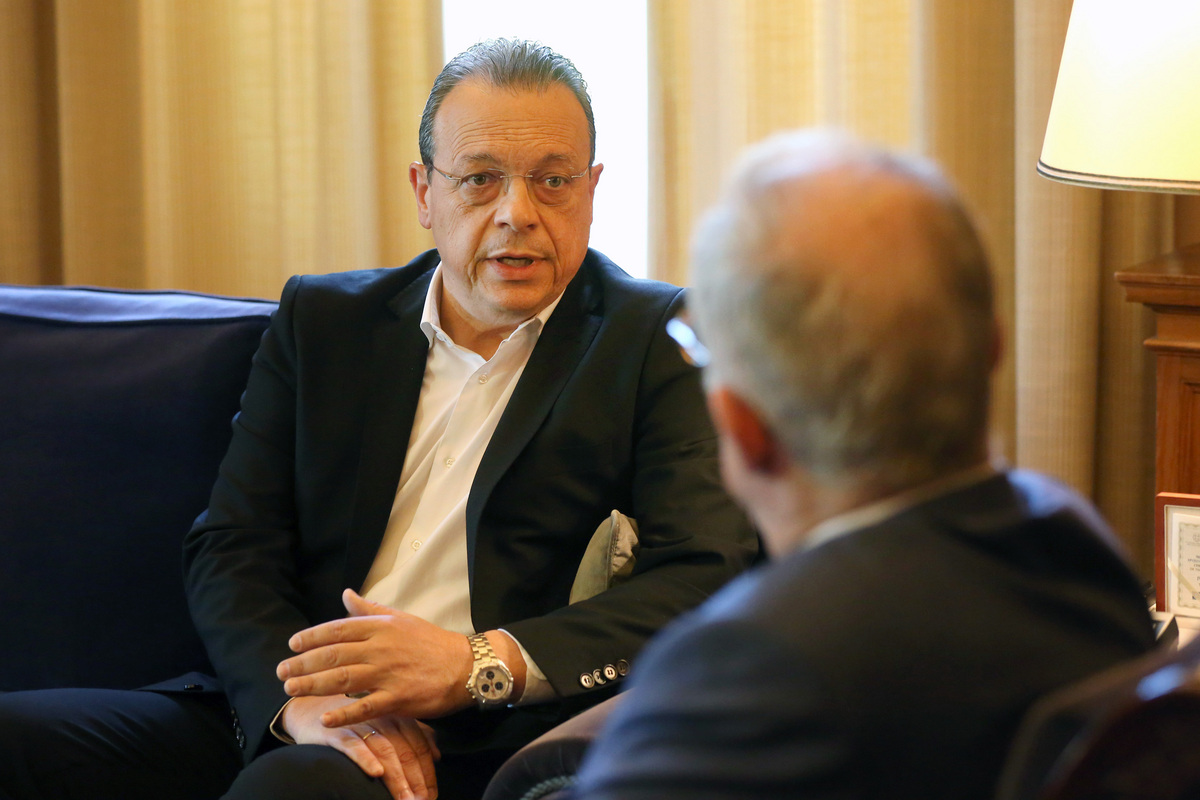 Ο Πρόεδρος της Δημοκρατίας Κωνσταντίνος Τασούλας (Δ) συνομιλεί με τον πρόεδρο του ΣΥΡΙΖΑ-ΠΣ Σωκράτη Φάμελλο (Α) στη συνάντηση τους στο Προεδρικό Μέγαρο, Αθήνα Τρίτη 27 Μαΐου 2025. ΑΠΕ-ΜΠΕ/ΑΠΕ-ΜΠΕ/ΟΡΕΣΤΗΣ ΠΑΝΑΓΙΩΤΟΥ