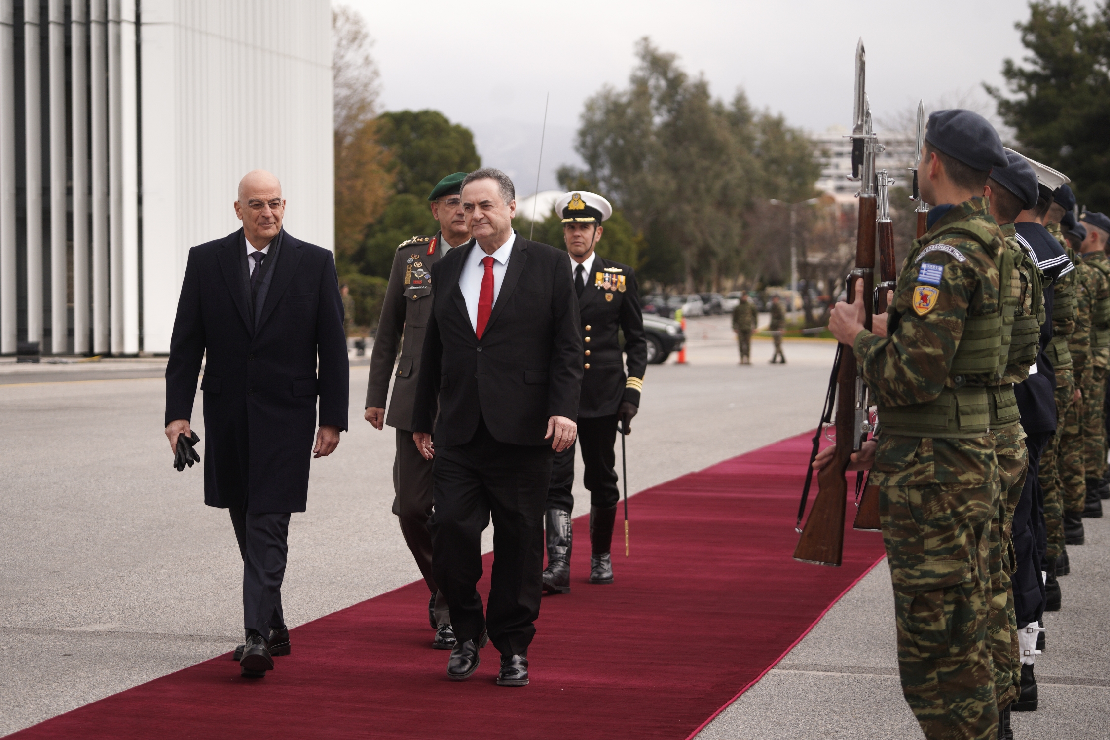 The Greek Minister of National Defense, Nikos Dendias meets his Israeli counterpart Israel Katz, at the Ministry of National Defense in Athens, Greece on January 20, 2026. / Ο Έλληνας Υπουργός Εθνικής Άμυνας, Νίκος Δένδιας συναντά τον Υπουργό Άμυνας του Ισραήλ, Israel Katz, στο Υπουργείο Εθνικής Άμυνας, Αθήνα 20 Ιανουαρίου 2026.
