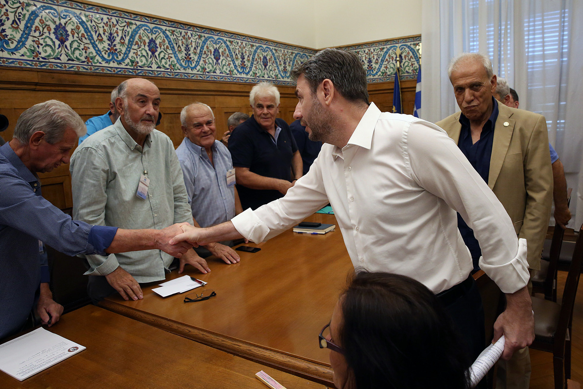 Ο πρόεδρος του ΠΑΣΟΚ-Κινήματος Αλλαγής, Νίκος Ανδρουλάκης, συναντάται με την Πανελλήνια Ομοσπονδία Πολιτικών Συνταξιούχων (ΠΟΠΣ) στα γραφεία του κόμματος στη Βουλή, Αθήνα Τρίτη 15 Ιουλίου 2025. ΑΠΕ-ΜΠΕ/ΑΠΕ-ΜΠΕ/ΟΡΕΣΤΗΣ ΠΑΝΑΓΙΩΤΟΥ