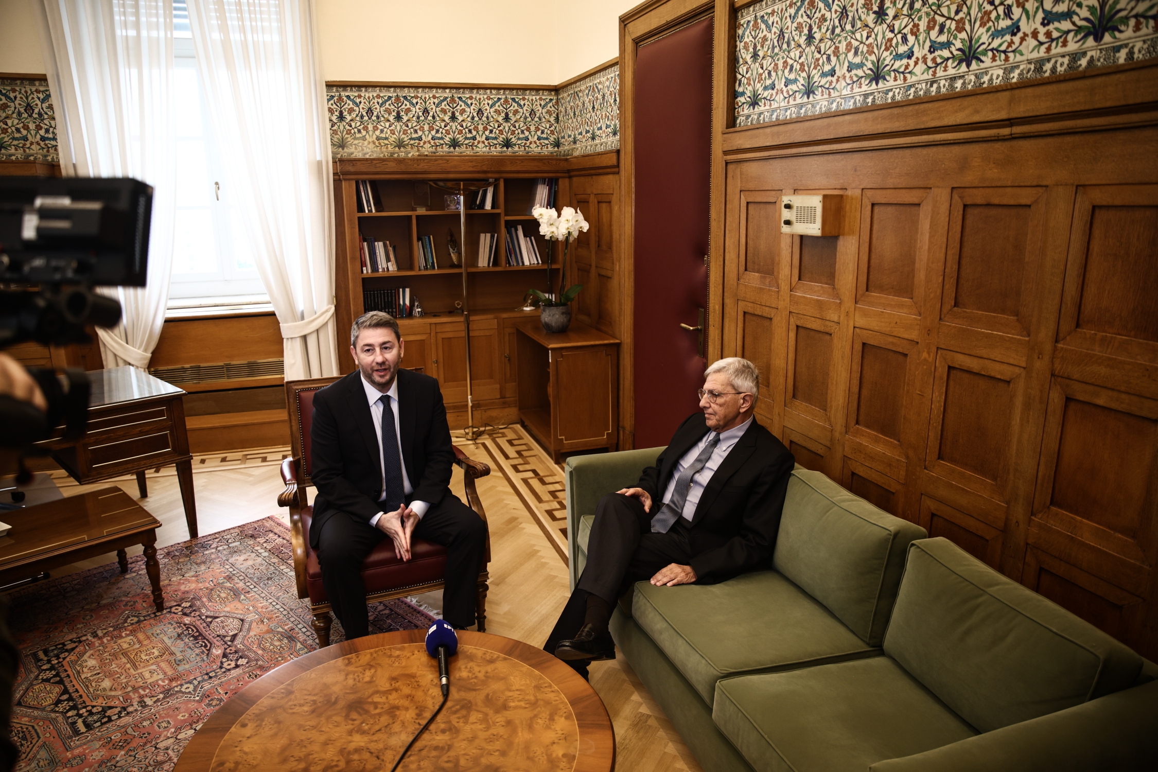 Συνάντηση με τον Τάσο Γιαννίτση, τον οποίο προτείνει το ΠΑΣΟΚ-Κίνημα Αλλαγής για την Προεδρία της Δημοκρατίας, είχε ο πρόεδρος του κόμματος, Νίκος Ανδρουλάκης, στο γραφείο του στη Βουλή.