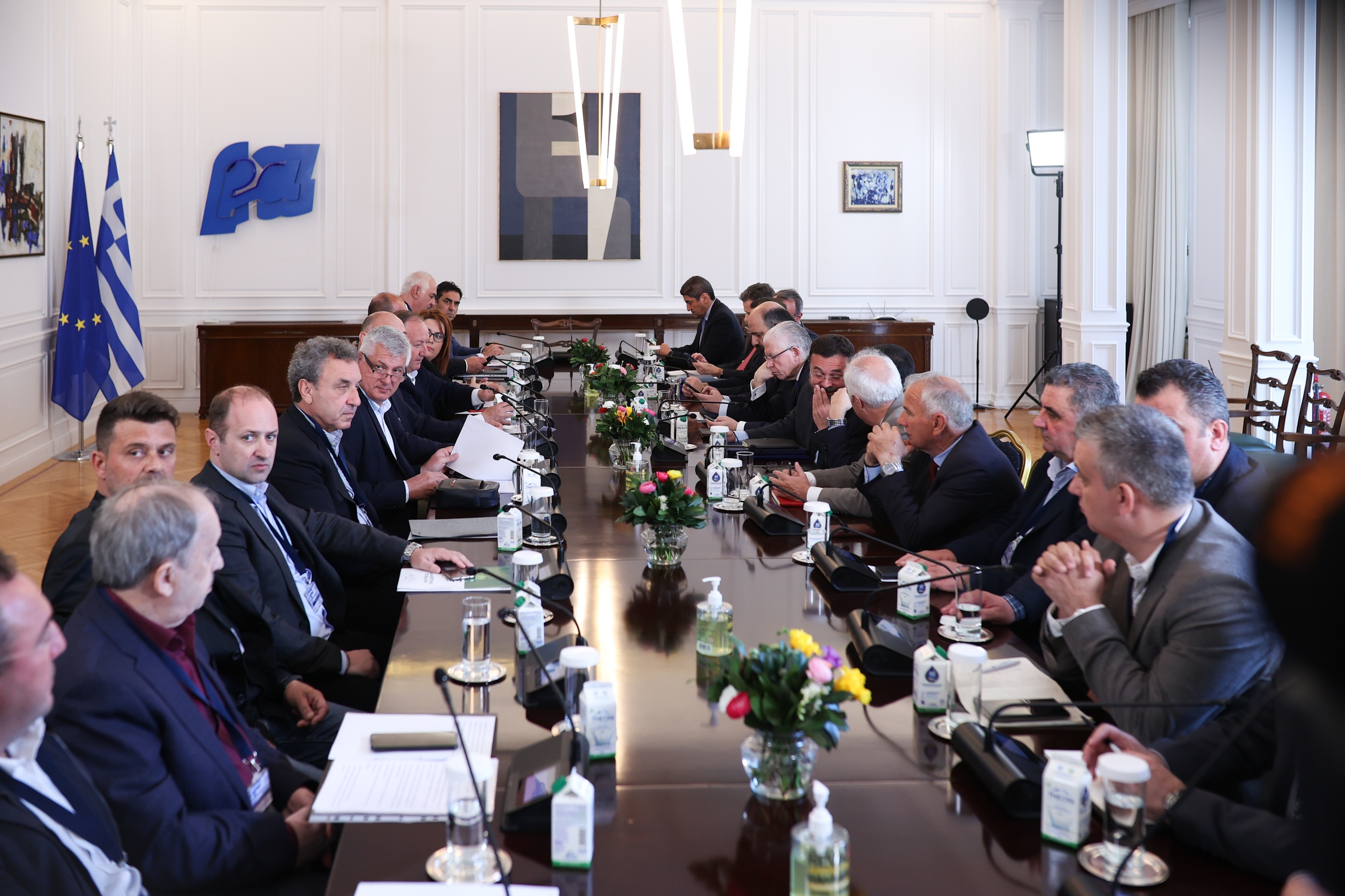 Συνάντηση του πρωθυπουργού με εκπροσώπους αγροτικών φορέων στο Μέγαρο Μαξίμου