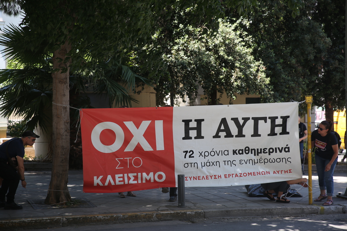 Την ίδια ώρα, οι εργαζόμενοι της εφημερίδας «Αυγή» και του ραδιοφωνικού σταθμού «Στο Κόκκινο 105,5» πραγματοποιούν συγκέντρωση έξω από τα κεντρικά γραφεία του ΣΥΡΙΖΑ, στην πλατεία Κουμουνδούρου.