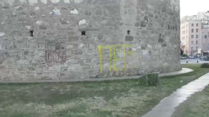 Στόχος βανδάλων έγινε κατά τη διάρκεια της νύχτας ο Λευκός Πύργος, το μνημείο σύμβολο της Θεσσαλονίκης, από αγνώστους που έγραψαν τέσσερα γράμματα με κίτρινη μπογιά.
