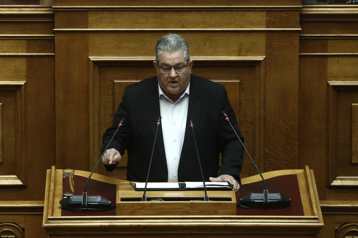 Ο γγ της ΚΕ του ΚΚΕ, Δημήτρης Κουτσούμπας μιλάει κατά τη διάρκεια της συζήτησης και λήψης απόφασης για τη σύσταση Ειδικής Κοινοβουλευτικής Επιτροπής στην Βουλή, Αθήνα Τρίτη 4 Μαρτίου 2025. Στην Βουλή διεξάγεται η συζήτηση και λήψη απόφαση για τη σύσταση Ειδικής Κοινοβουλευτικής Επιτροπής προς διενέργεια προκαταρκτικής εξέτασης, σύμφωνα με το άρθρο 86 παρ. 3 του Συντάγματος, τα άρθρα 153 επ. του Κανονισμού της Βουλής και το άρθρο 5 του ν.3126/2003 περί της «Ποινικής Ευθύνης των Υπουργών», όπως ισχύουν, επί της υπ’ αριθμ. 1027/5-2-2025 προτάσεως που κατέθεσαν ο αρχηγός της Αξιωματικής Αντιπολίτευσης και πρόεδρος της Κοινοβουλευτικής Ομάδας «ΠΑΣΟΚ-ΚΙΝΗΜΑ ΑΛΛΑΓΗΣ» Νικόλαος Ανδρουλάκης και τριάντα (30) Βουλευτές της Κοινοβουλευτικής του Ομάδας, για την ενδεχόμενη τέλεση του αδικήματος της παράβασης καθήκοντος (άρθρο 259 ΠΚ) κατά το χρονικό διάστημα μεταξύ 3-3-2023 και 6-3-2023 από τον πρώην υφυπουργό παρά τω Πρωθυπουργώ Χρήστο Τριαντόπουλο, κατά την άσκηση των καθηκόντων του και σύμφωνα με τα διαλαμβανόμενα στην πρόταση. ΑΠΕ-ΜΠΕ/ΑΠΕ-ΜΠΕ/ΓΙΑΝΝΗΣ ΚΟΛΕΣΙΔΗΣ