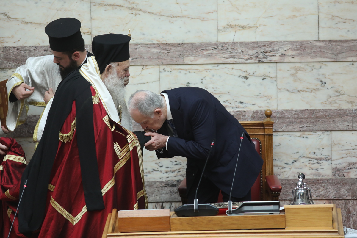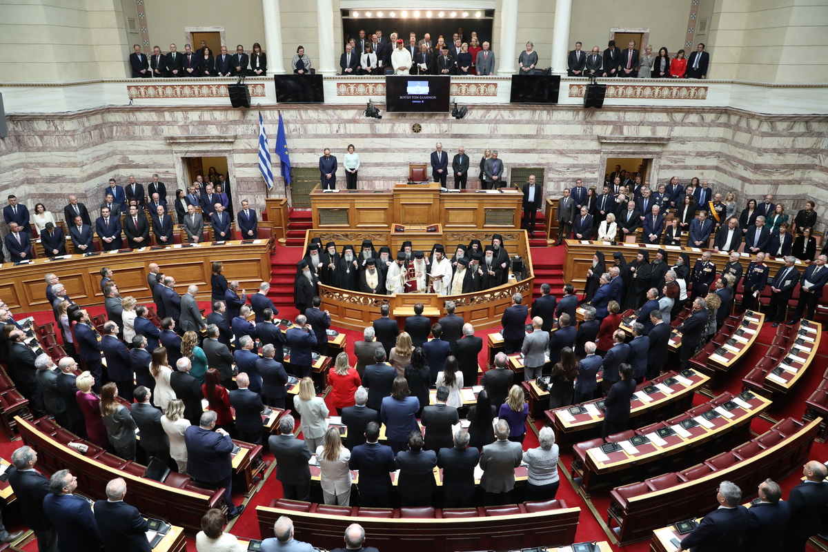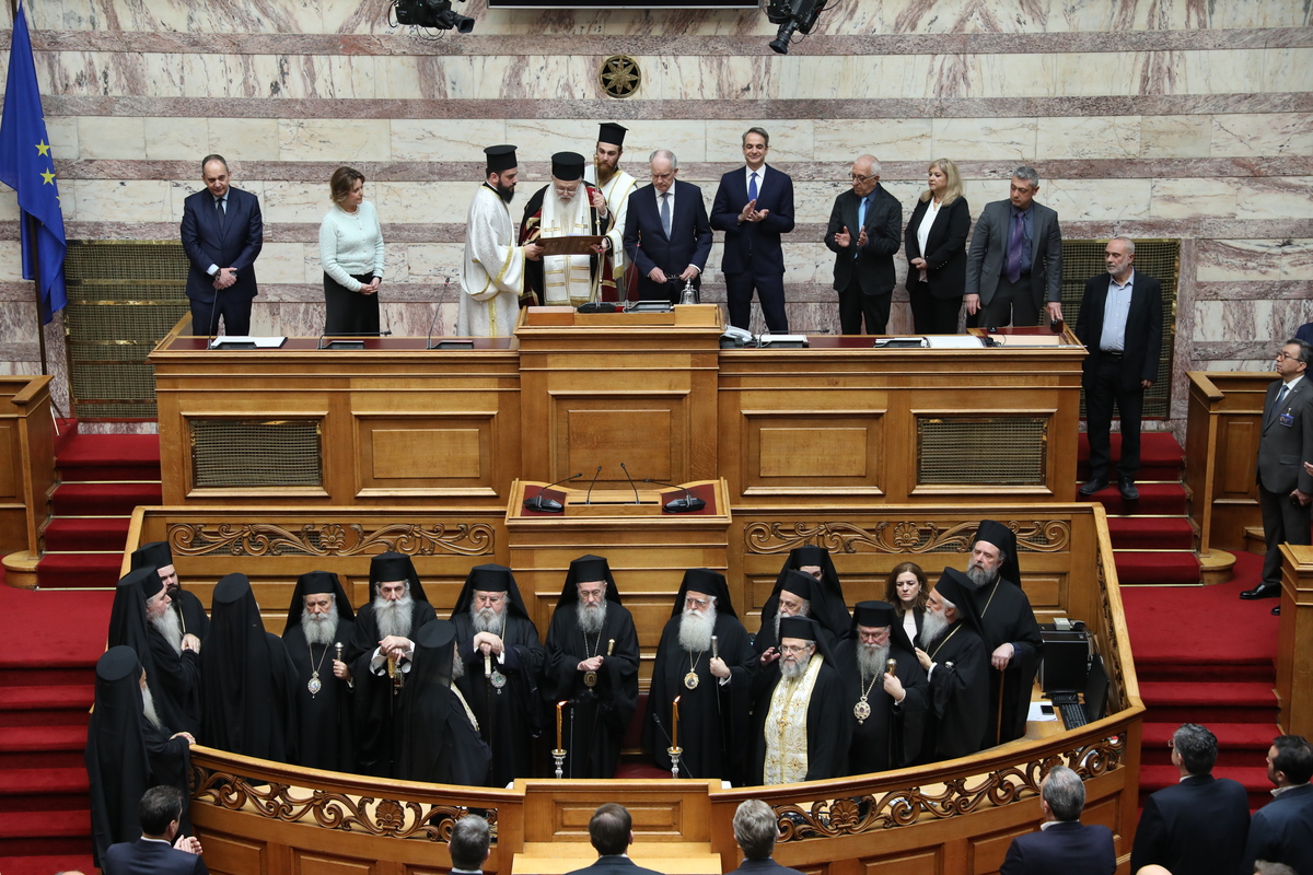 Ακολούθως, εκλήθη ο β’ αντιπρόεδρος της Βουλής, Γ. Γεωργαντάς να συνοδεύσει στην αίθουσα του κοινοβουλίου τον Μακαριότατο Αρχιεπίσκοπο Αθηνών και πάσης Ελλάδος κ. Ιερώνυμο και τα συνοδεύοντα αυτόν μέλη της Ιεράς Συνόδου της Εκκλησίας της Ελλάδος.
