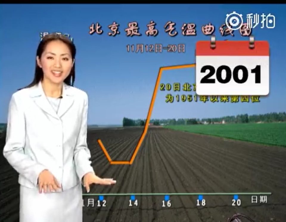 Η Ντανγκ Γιανγκ, Κινέζα μετεωρολόγος, φαίνεται να έχει μην έχει αλλάξει καθόλου από το 1996 που είπε για πρώτη φορά τον καιρό.
