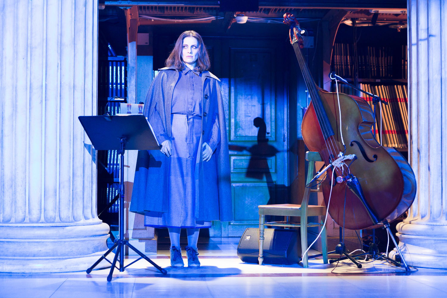 «Η Αμαλία Μουτούση και ο Κωνσταντίνος Αβαρικιώτης, σε μια εμβάπτιση σε όλες τις πτυχές του ποιητικού υλικού, αναλαμβάνουν τα πρόσωπα του έργου και η Άννα Παγκάλου τον Χορό. Χρησιμοποιούν μια παρτιτούρα μουσικών ενδείξεων που διατρέχει όλο το κείμενο και την ίδια την μουσική με μια συγκεκριμένη τεχνική: τις «ηχητικές μάσκες», που διαφοροποιούν τα πρόσωπα. Διηγούνται αδρά και σε φρενήρη ρυθμό, μια ιστορία που τους περιβάλλει. Θέλουν να μας καθησυχάσουν αλλά και να μας πουν για τα θαυμαστά και τρομερά πράγματα που λεπτομέρειές τους, γνωρίζουν μόνο αυτοί.