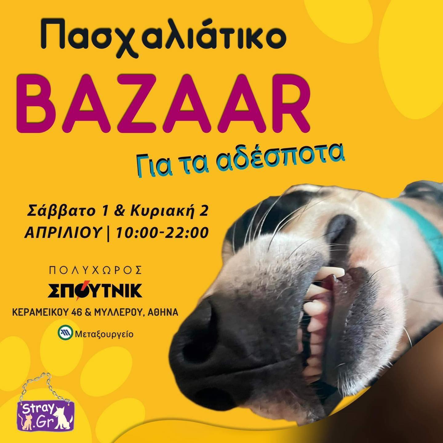 Σε γενικές γραμμές, από τα μπαζάρ που διοργανώνουν τα φιλοζωικά σωματεία εθελοντών προέρχεται η βασική τους χρηματοδότηση του έργου τους. Σε πολλές περιπτώσεις μάλιστα, όπως και για το stray.gr, η συνεισφορά των πολιτών είναι η αποκλειστική πηγή εσόδων για να μπορούν να σταθούν δίπλα στις ευάλωτες αδέσποτες ψυχές. «Βοηθήστε μας να βοηθούμε» είναι το μήνυμα των εθελοντών του stray.gr, οι οποίοι περιμένουν τους Αθηναίους και τις Αθηναίες στο «Σπούτνικ», Κεραμεικού 46 και Μυλλέρου, πολύ κοντά στη στάση μετρό Μεταξουργείο.