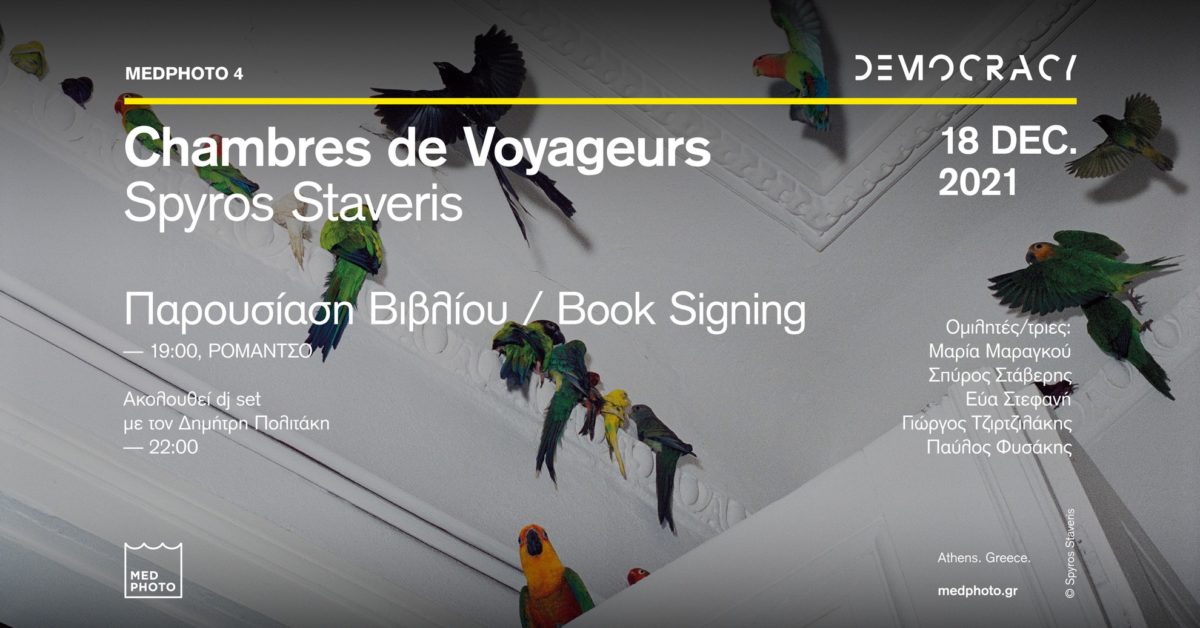 Η KOLEKTIV8 παρουσιάζει την έκδοση του βιβλίου τού Σπύρου Στάβερη Chambres de Voyageurs, το Σάββατο 18 Δεκεμβρίου, στις 19.00 στο ΡΟΜΑΝΤΣΟ, στο πλαίσιο του 4ου Μεσογειακού Φεστιβάλ Φωτογραφίας, με ομιλήτριες και ομιλητές τη Μαρία Μαραγκού, τον Σπύρο Στάβερη, την Εύα Στεφανή, τον Γιώργο Τζιρτζιλάκη και τον Παύλο Φυσάκη.