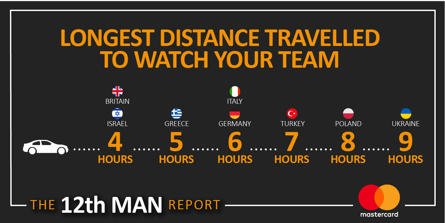 Ένας στους 10 Ευρωπαίους φιλάθλους θα ‘θυσίαζε΄ τον μήνα του μέλιτος για να παρακολουθήσει την ομάδα του να παίζει στον τελικό του UEFA Champions League και το 41% των Ελλήνων που αγαπούν τη μπάλα έχει ταξιδέψει μέχρι και 5 ώρες για να παρακολουθήσει αγώνα της ομάδας του.