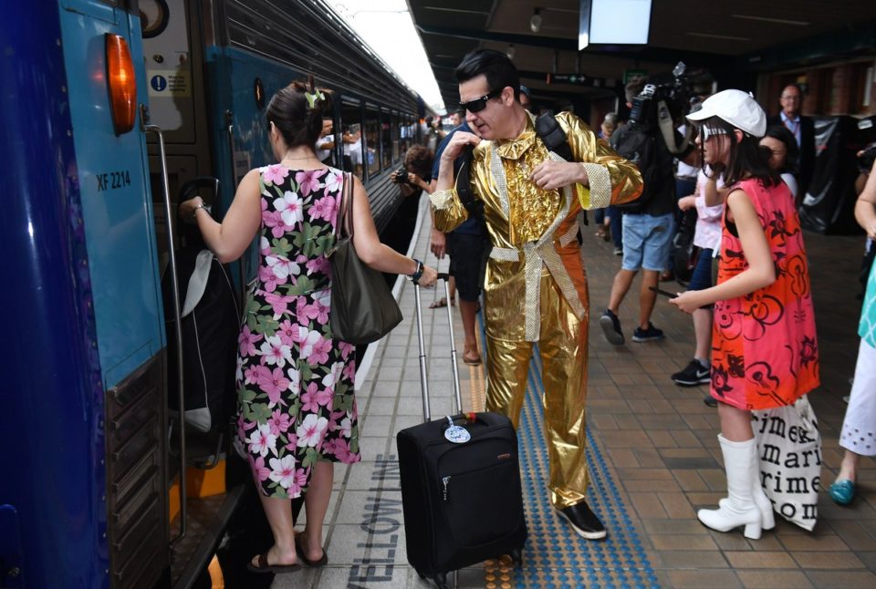 Εκατοντάδες λάτρεις του ‘Ελβις Πρίσλεϊ εισέβαλαν σήμερα στον κεντρικό σιδηροδρομικό σταθμό του Σίδνεϊ και χόρεψαν στους ρυθμούς των τραγουδιών του περιμένοντας το “Blue Suede Express” για να τους μεταφέρει στο φεστιβάλ που διοργανώνεται κάθε χρόνο με αφορμή την επέτειο γέννησής του «Βασιλιά».