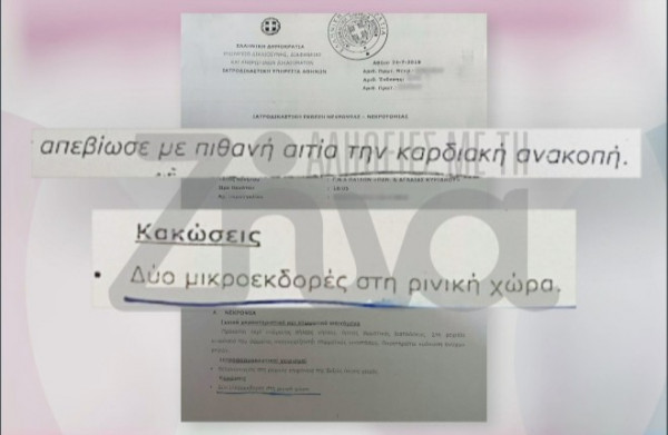 Το έγγραφο που έφερε στο φως η εκπομπή «Αλήθειες με τη Ζήνα» αφορά την ιατροδικαστική εξέταση της μικρής Μαλένας, και αναφέρει ότι το παιδί είχε δύο εκδορές στη μύτη και ότι το στομαχάκι του ήταν άδειο. Το τελευταίο, έρχεται σε αντίθεση με όσα ισχυρίστηκε η μητέρα, η οποία είπε ότι το παιδί πριν λίγες ώρες πριν «φύγει» είχε φάει σουβλάκι.