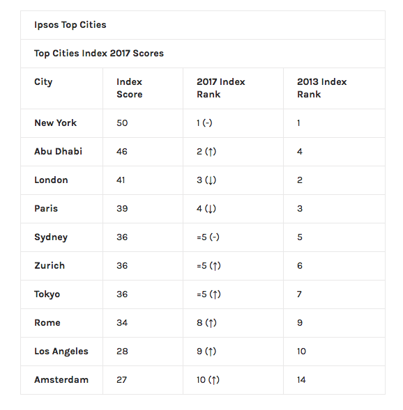 Ο Simon Atkinson, διευθύνων σύμβουλος στην Ipsos, δήλωσε «Ξανά βλέπουμε την δύναμη του brand της Νέας Υόρκης να έχει τη μεγαλύτερη απήχηση στους ανθρώπους όλους του κόσμου.»