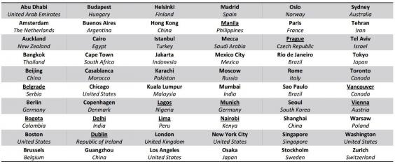 18,557 ενήλικες μεταξύ 16-64 ετών, σε 26 χώρες του κόσμου ρωτήθηκαν από την Ipsos-MORI ποιές είναι οι καλύτερες πόλεις για να ζήσουν, να επισκεφθούν και να εργαστούν. Το σκορ κάθε πόλης υπολογίζεται με την πρόσθεση των σκορ που πετυχαίνει στις τρεις κατηγορίες. Υπήρχε μια λίστα με εξήντα πόλεις για να διαλέξουν: