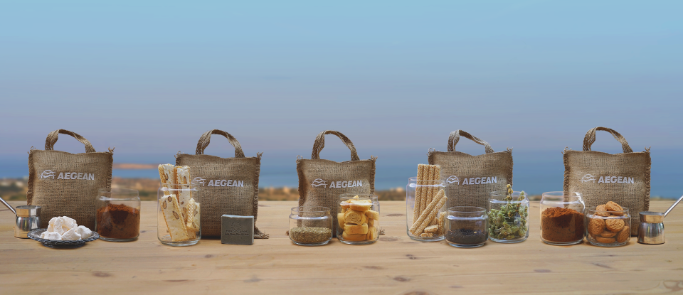 Τα φιλέματα που δημιούργησε η AEGEAN αποκλειστικά για τη συγκεκριμένη ενέργεια σε συνεργασία με Έλληνες παραγωγούς αλλά και δημιουργούς από κάθε γωνιά της χώρας περιλαμβάνουν τοπικά προϊόντα όπως παξιμάδι λαδιού, ρίγανη, παστέλι με μαστίχα Χίου, αρωματικό τσάι, βότανα, φιστίκια Αιγίνης, ελληνικό καφέ, μαντολάτο καθώς και αναμνηστικά της χώρας μας, μοιράζοντας γεύση από Ελλάδα σε ολόκληρο τον κόσμο.
