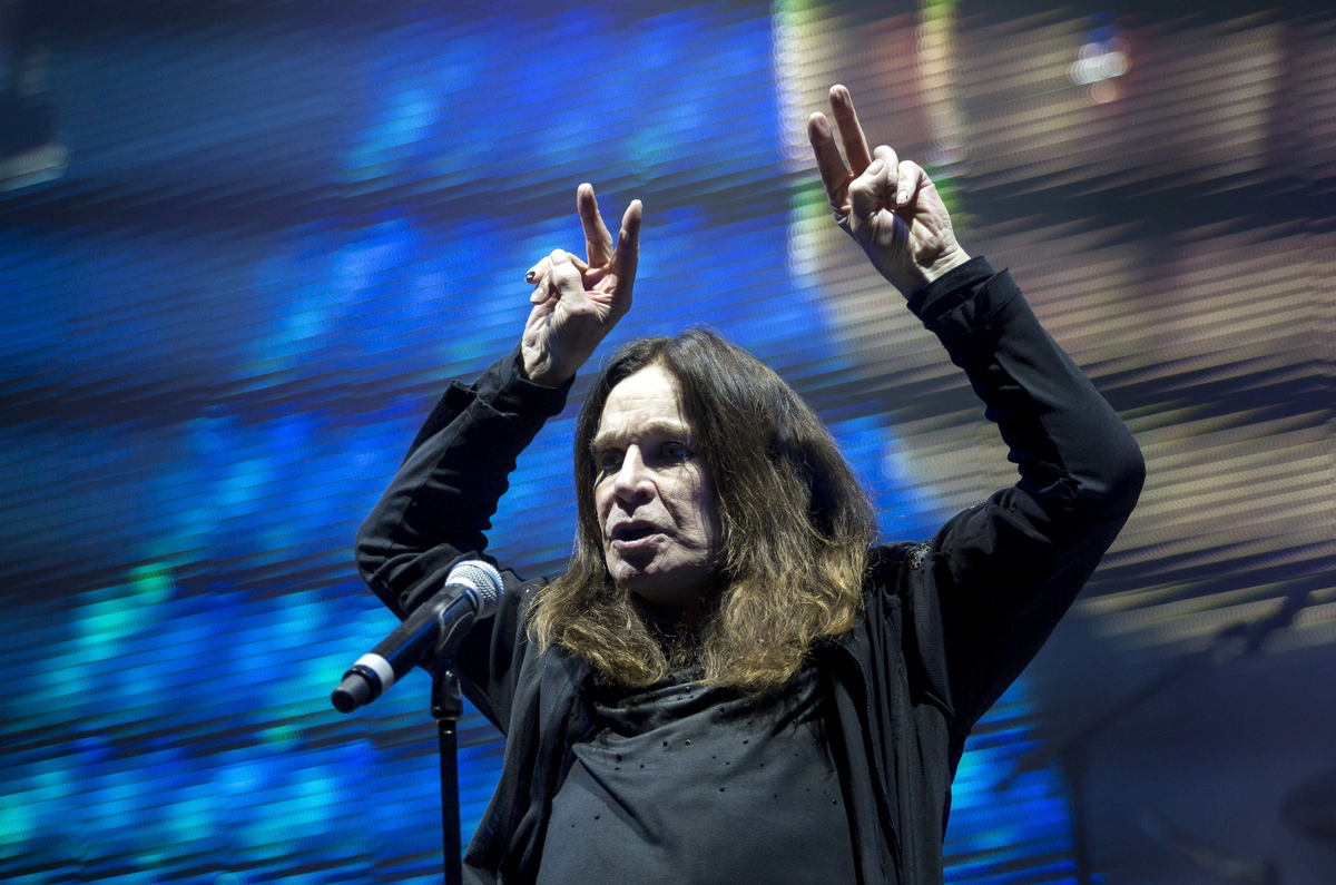 Ο 76χρονος Όζι Όσμπορν, ο οποίος πάσχει από νόσο του Πάρκινσον, τραγούδησε καθισμένος σε έναν μαύρο θρόνο φορώντας ένα δερμάτινο παλτό και ένα χρυσό περιβραχιόνιο που έγραφε το όνομά του.