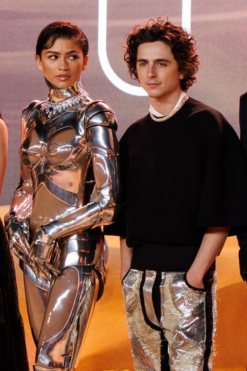Η βραβευμένη ηθοποιός Zendaya ήταν συγκλονιστική αφού εμφανίστηκε με μία εμβληματική δημιουργία του Τιερί Μιγκλέρ από τη συλλογή Maschinenmensch (Άνθρωποι Ρομπότ) που παρουσιάστηκε το 1995. Με τη βοήθεια του διάσημου στυλίστα Λο Ρόουτς (Law Roach) ολοκλήρωσε την εμφάνισή της με ένα εντυπωσιακό κόσμημα στο λαιμό της του οίκου Bulgari ενώ στη συνέχεια φόρεσε επίσης ένα μαύρο vintage φόρεμα του οίκου Μιγκλέρ, σύμφωνα με το Deadline.