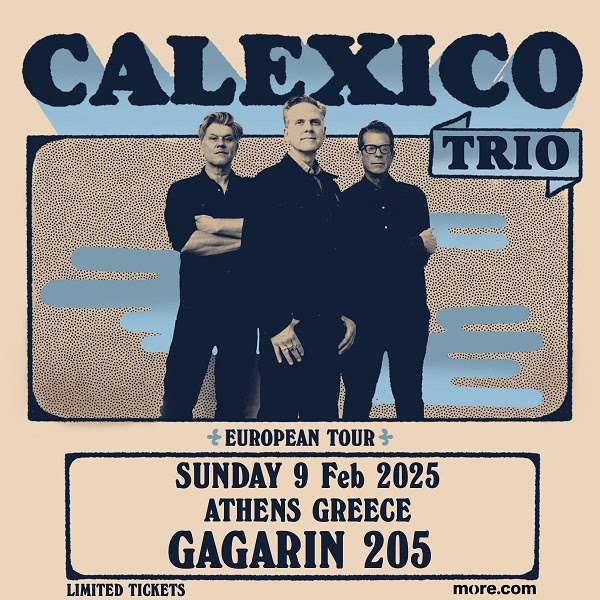 Θα είναι μία όμορφη Κυριακή απόγευμα η Κυριακή 9 Φεβρουαρίου, όταν οι αγαπημένοι μας Calexico θα φέρουν για άλλη μια φορά στην Αθήνα «τον αέρα της αμερικανικής ερήμου», αυτή τη φορά ως trio και για πρώτη φορά στη σκηνή του Gagarin 205.