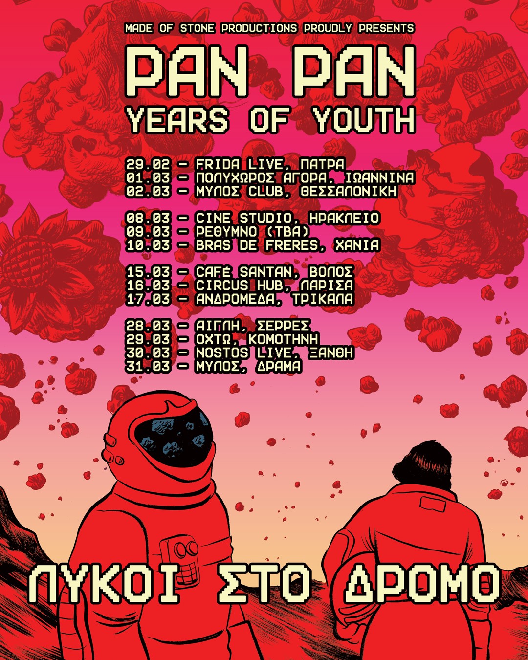 PAN PAN & YEARS OF YOUTH live! “ΛΥΚΟΙ ΣΤΟ ΔΡΟΜΟ” Spring Tour 2024