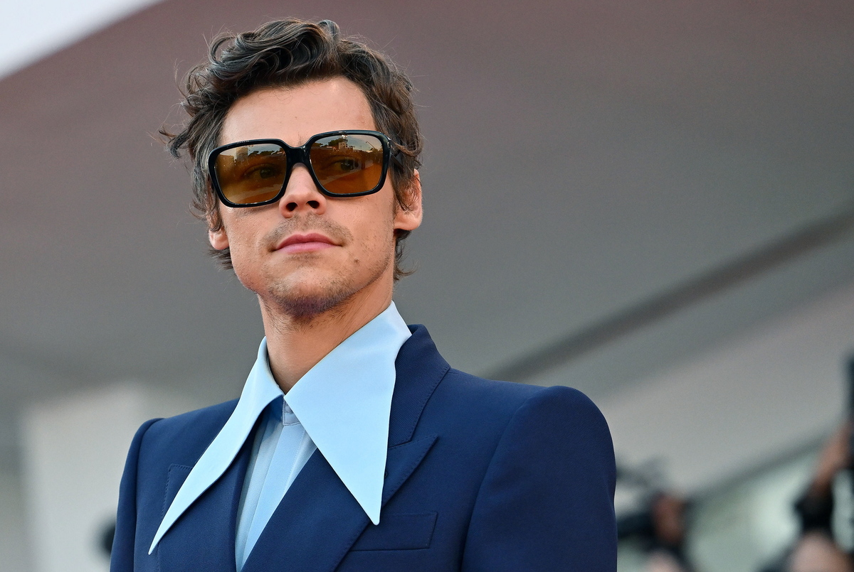 epa10162232 British singer Harry Styles arrives for the premiere of 'Don't Worry Darling' during the 79th annual Venice International Film Festival in Venice, Italy, 05 September 2022. The movie is presented out of competition at the festival running from 31 August to 10 September 2022. EPA/ETTORE FERRARI
