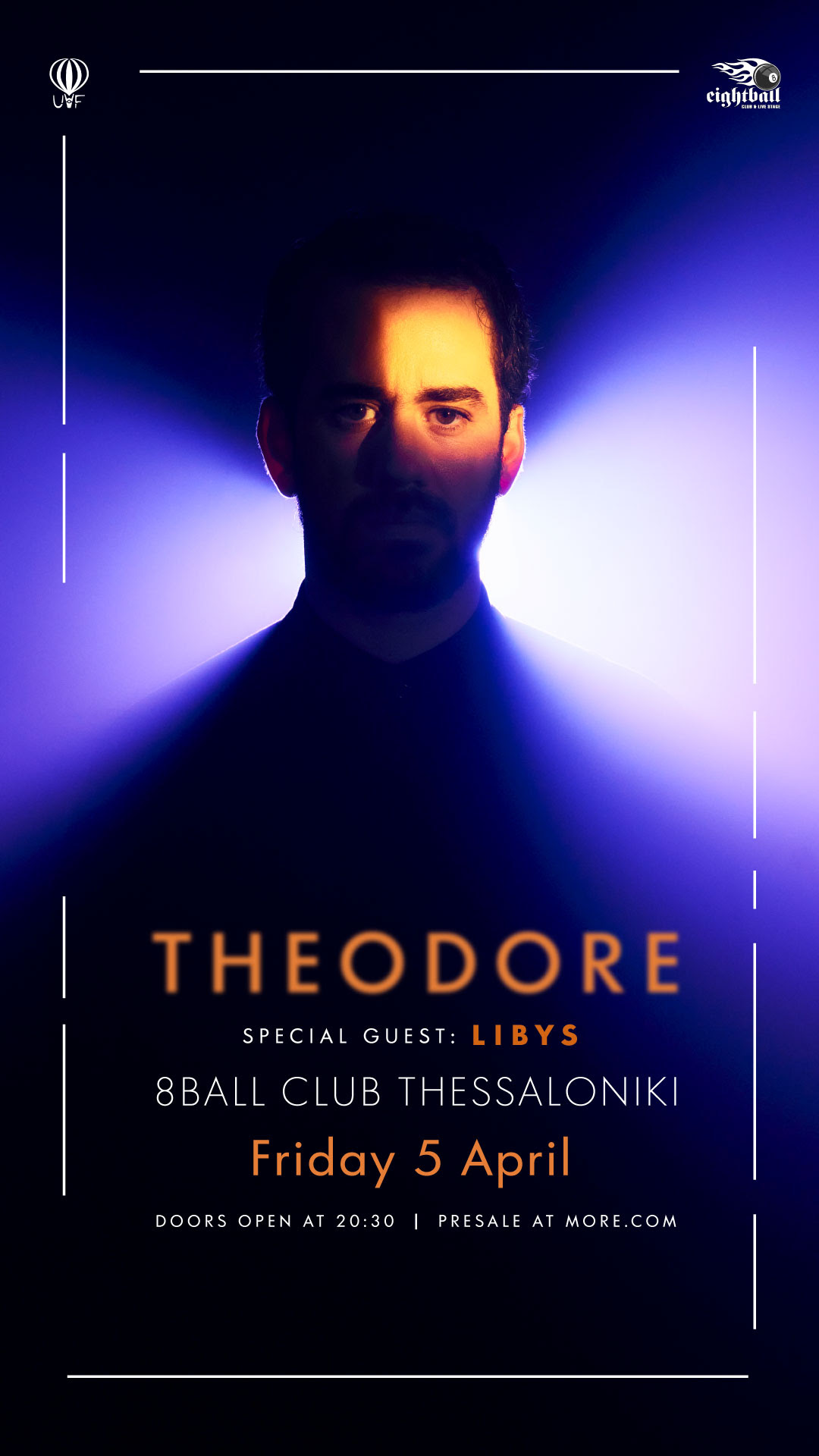 Είναι φανερή η αγάπη του Theodore στη σύνθεση μουσικής που δημιουργεί εικόνες, ιστορίες ή παραμύθια, και η μετέπειτα αποτύπωσή της, ζωντανά σε ενεργητικές και μυσταγωγικές συναυλίες, με εκπληκτικά light shows και visuals. Με ενθουσιασμό, κινηματογραφική διάθεση και περισσότερη ενέργεια από ποτέ, ο Theodore ανυπομονεί να μοιραστεί, για πρώτη φορά, το νέο του υλικό, στον μοναδικό χώρο του 8Ball.