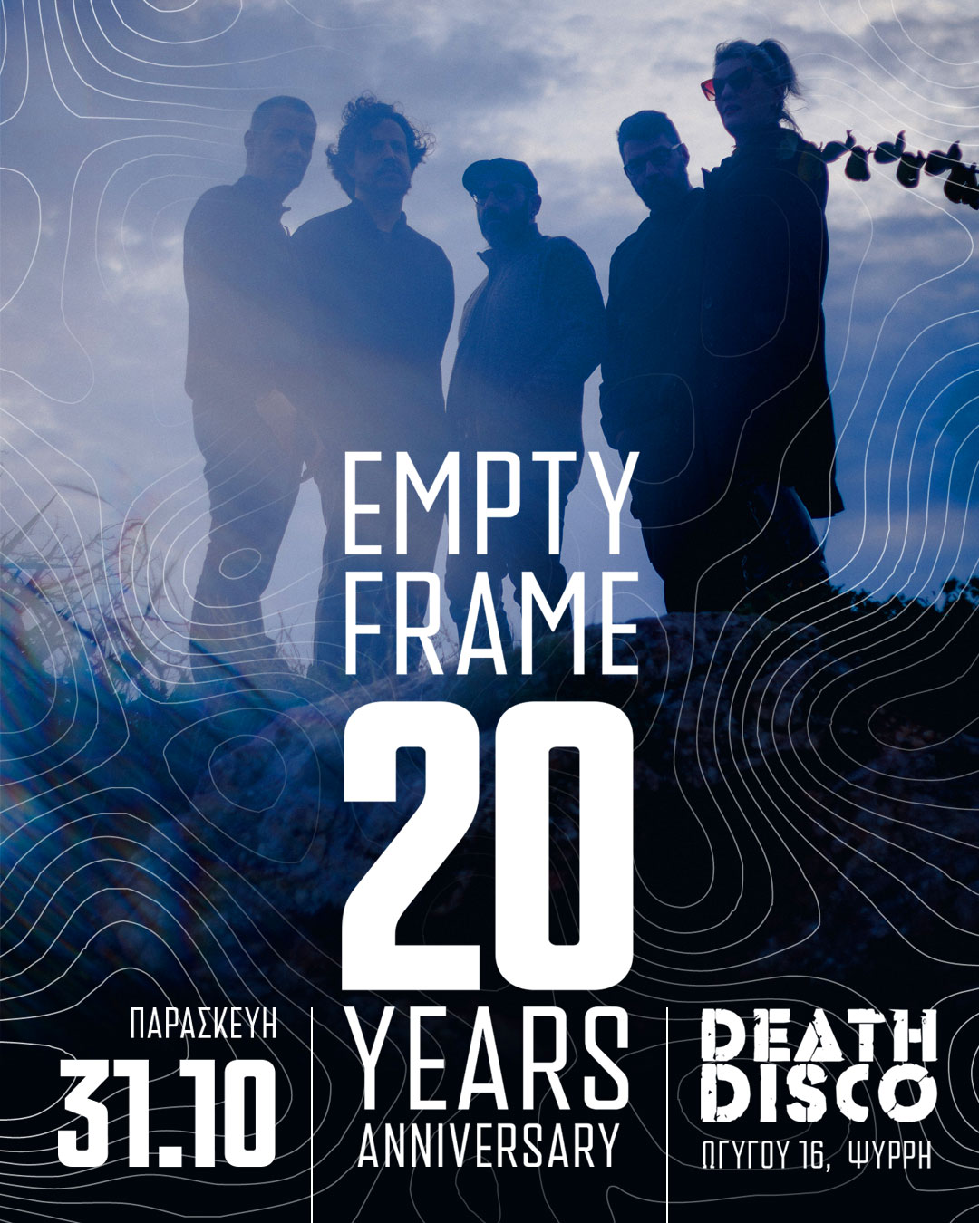 Οι Empty Frame γίνονται 20 χρονών και ανεβαίνουν στη σκηνή του αγαπημένου τους αθηναϊκού venue, Death Disco, για μια ξεχωριστή συναυλία γεμάτη παλιούς και νέους φίλους.