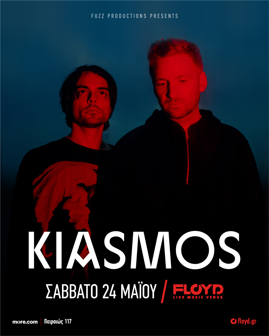 H εμφάνιση των Kiasmos, στο Floyd Live Music Venue, μεταφέρεται μία μέρα νωρίτερα, το Σάββατο 24 Μαΐου – αντί της Κυριακής 25/5 που είχε ανακοινωθεί.