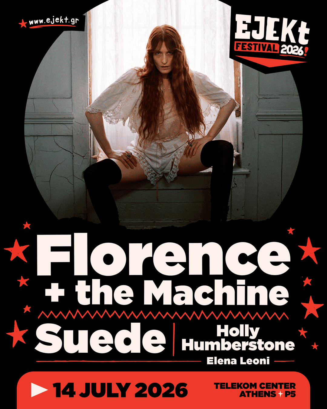 Οι Suede, η Holly Humberstone και η Elena Leoni είναι τα ονόματα που θα εμφανιστούν μαζί με τους Florence The Machine στην Day1 του EJEKT Festival 2026 στις 14 Ιουλίου στο Telekom Center Athens (open air).