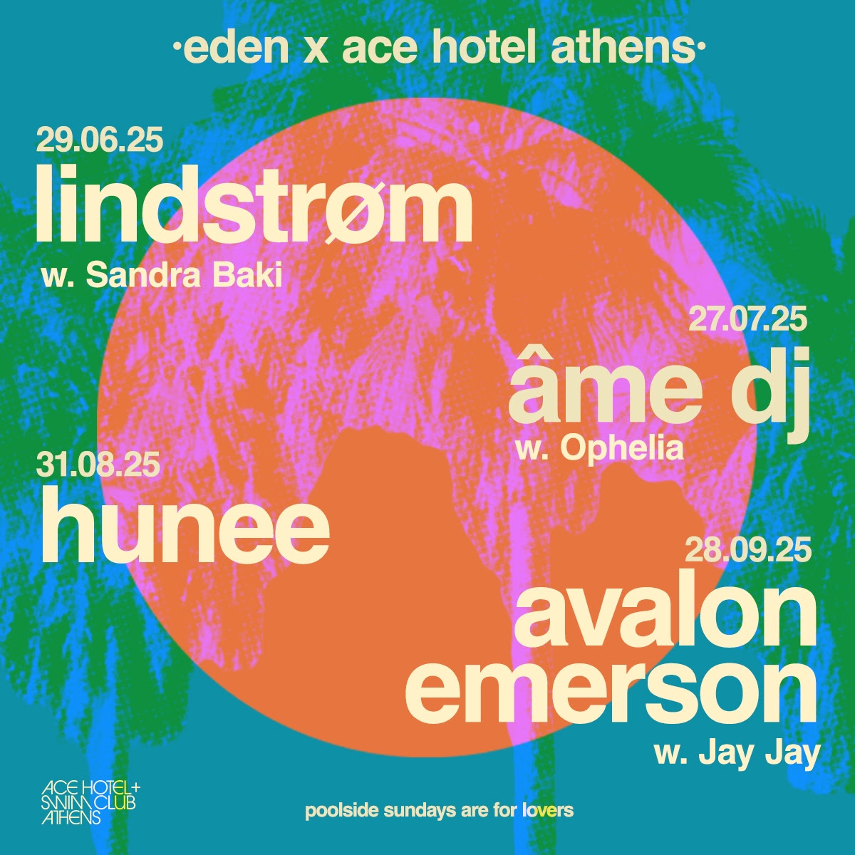 Το Ace Hotel, το Plisskën Festival και τα EDEN ενώνουν τις δυνάμεις τους αυτό το καλοκαίρι. Τα Κυριακάτικα EDEN day raves μεταφέρονται στο ξενοδοχείο, κάθε τελευταία Κυριακή του μήνα από Ιούνιο μέχρι και τον Σεπτέμβριο, για όλη τη σεζόν όπου θα συγκεντρώσει μερικούς από τους πιο σημαντικούς καλλιτέχνες της μουσικής του σήμερα από όλο τον κόσμο: LINDSTROM, ÂME, HUNEE και AVALON EMERSON by the pool!