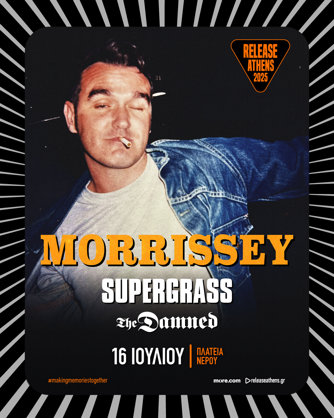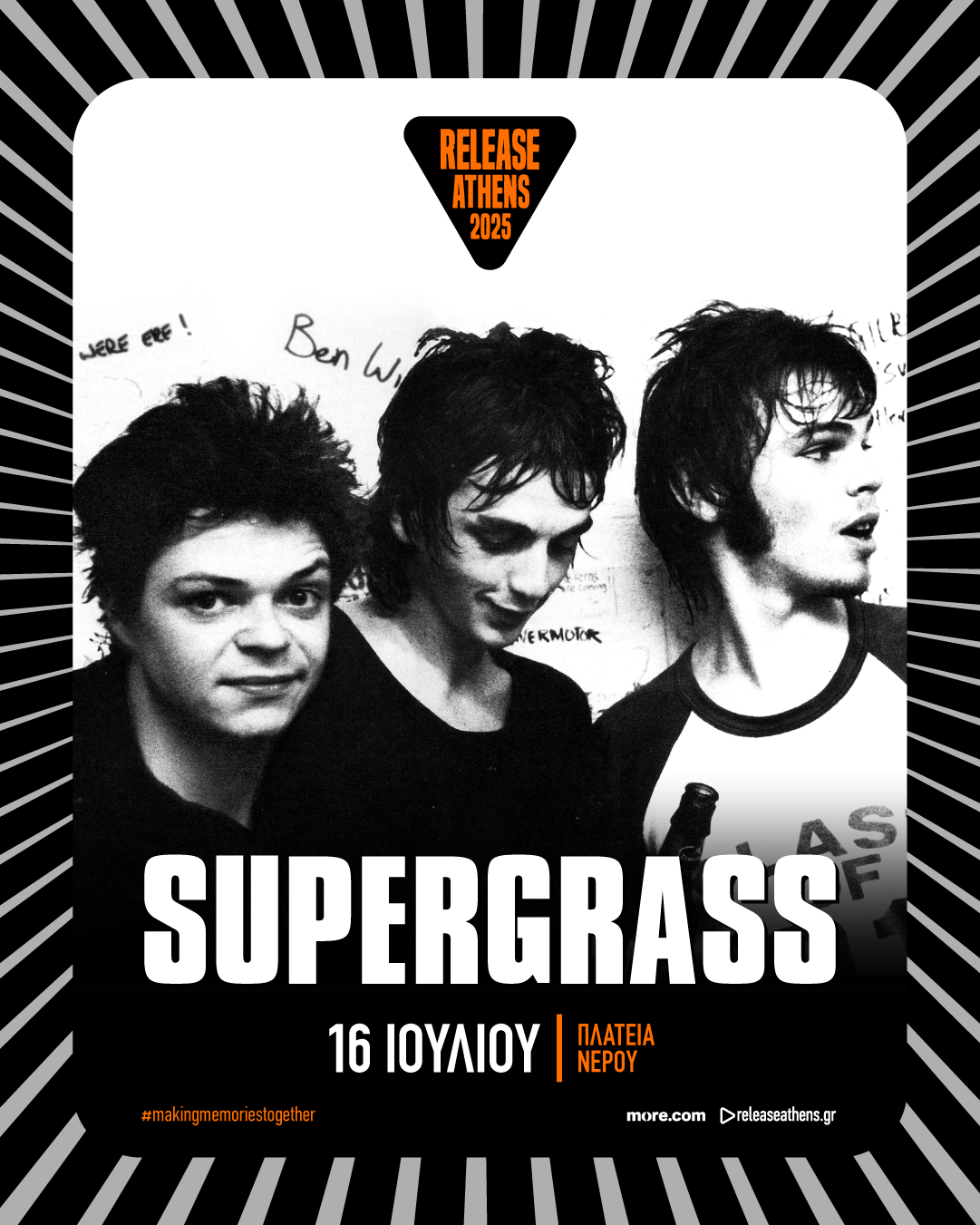 Το Release Athens 2025 υποδέχεται τους Supergrass και τους The Damned, την Τετάρτη 16 Ιουλίου, στην Πλατεία Νερού. Ένα από τα πιο επιτυχημένα συγκροτήματα των 90s και η εμβληματική μπάντα που άναψε το πρώτο φυτίλι στην έκρηξη του punk, αντίστοιχα, θα μας ταξιδέψουν σε μερικές από τις απολαυστικότερες και πλέον χαρακτηριστικές στιγμές της Βρετανικής μουσικής, μέχρι να έρθει η ώρα για την πολυαναμενόμενη εμφάνιση του Morrissey, που θα είναι ο headliner της βραδιάς.