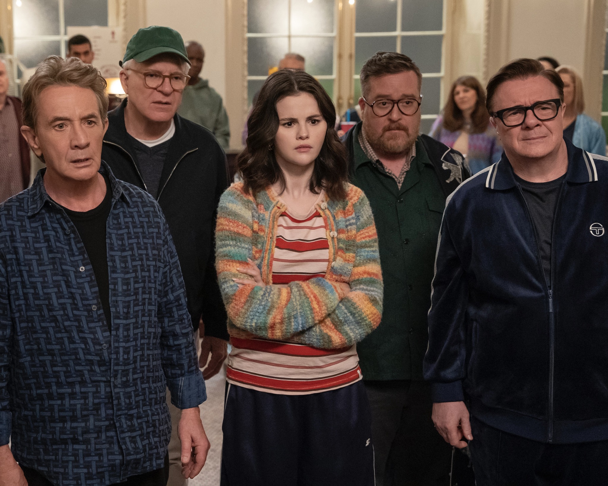 ONLY MURDERS IN THE BUILDING - “LESTR” - Told through the lens of one annoying robot who may hold the keys to more secrets than anyone realized — the Arconia throws one last party as the residents discover that a killer may still be in their building. (Disney/Patrick Harbron) MARTIN SHORT, STEVE MARTIN, SELENA GOMEZ, MICHAEL CYRIL CREIGHTON, NATHAN LANE