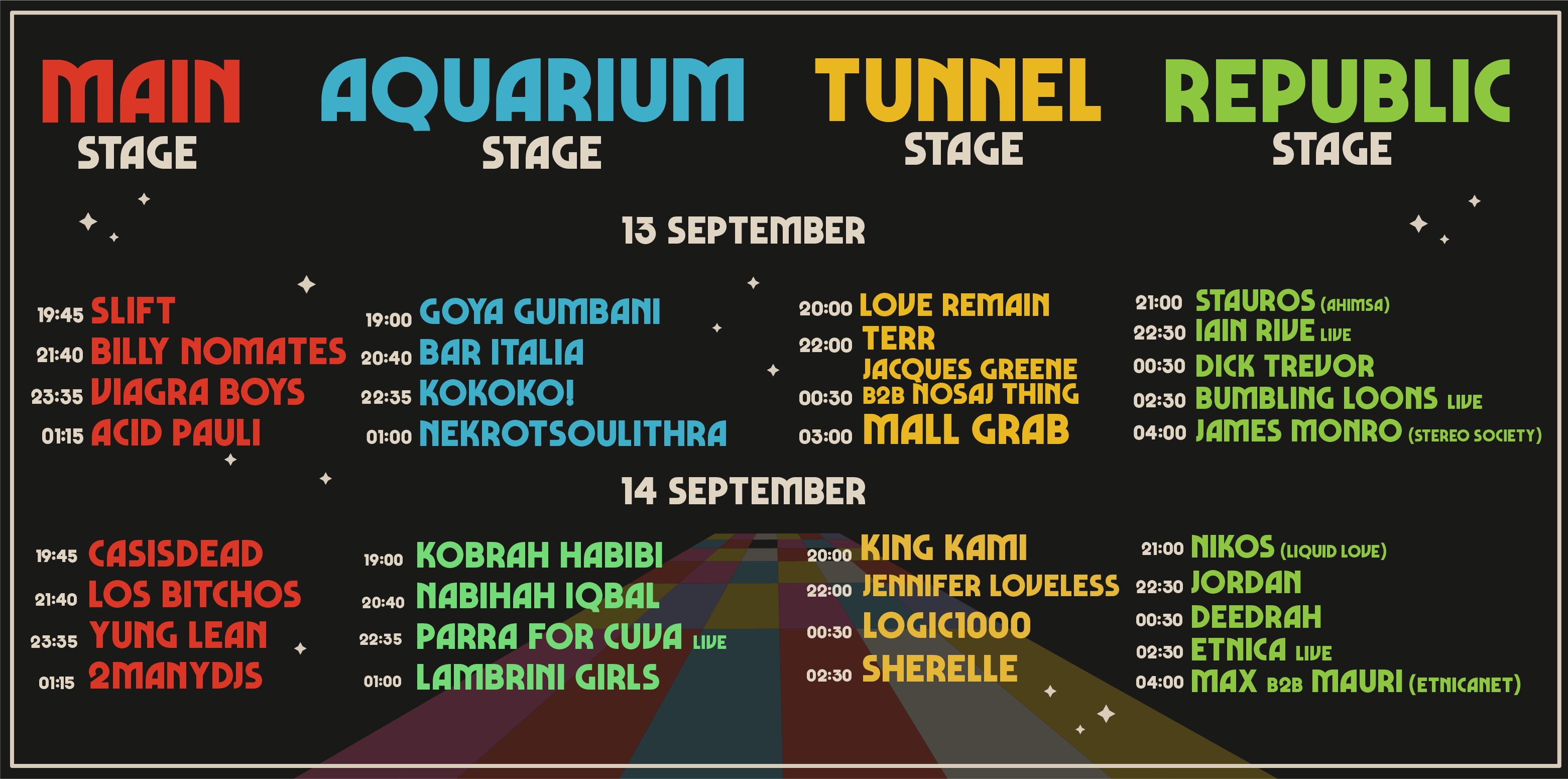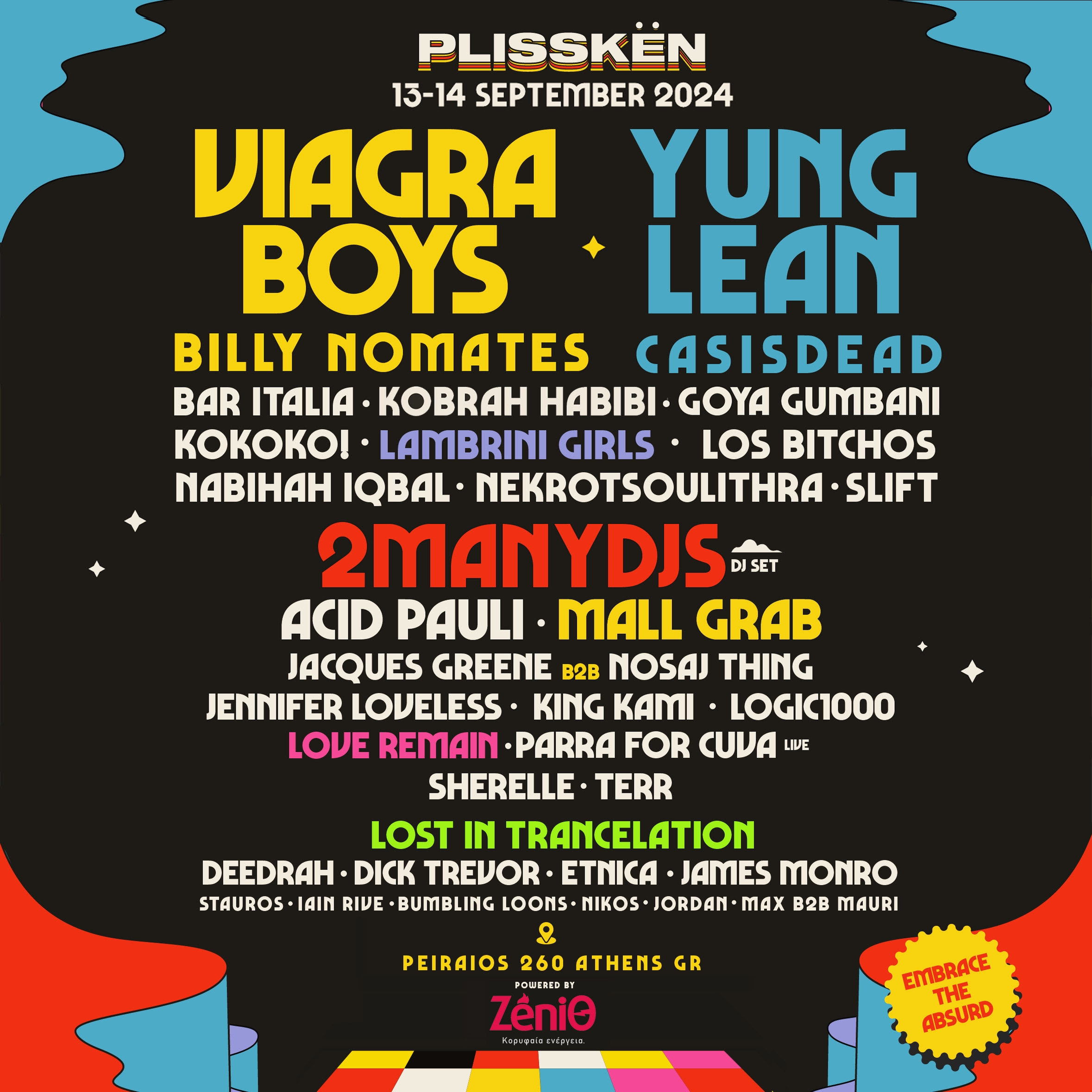 Viagra Boys, Yung Lean, Acid Pauli, 2ManyDjs, Parra for Cuva, Los Bitchos και άλλοι πολλοί καταξιωμένοι καλλιτέχνες θα βρεθούν για 2 ημέρες σε 4 stages στις εγκαταστάσεις του Φεστιβάλ Αθηνών, Πειραιώς 260, προκειμένου να προσφέρουν την απόλυτη φεστιβαλική εμπειρία!