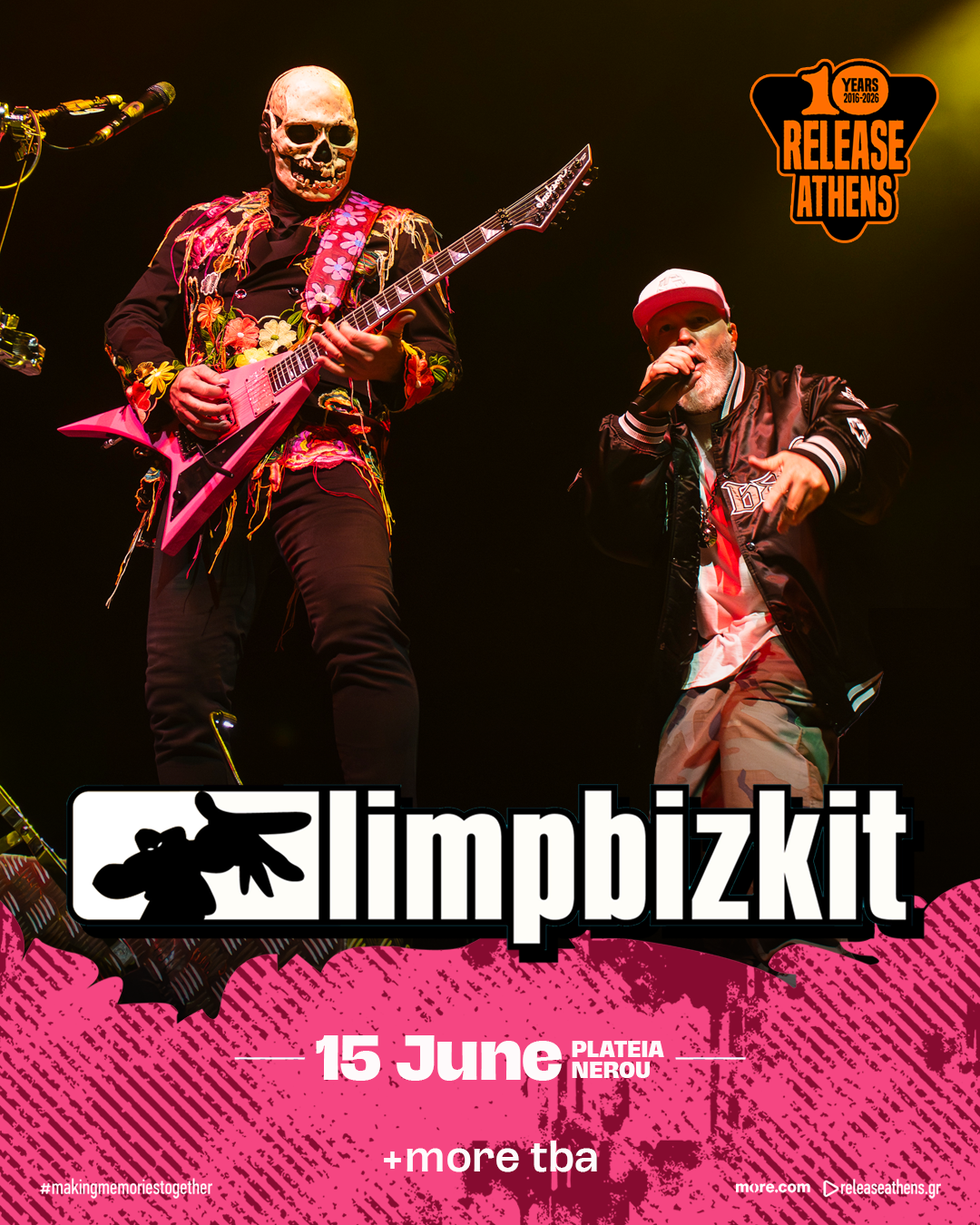 Το Release Athens 2026 υποδέχεται τους Limp Bizkit τη Δευτέρα 15 Ιουνίου, στην Πλατεία Νερού. Μετά από δεκαετίες προσμονής, η θρυλική μπάντα – βασικός πυλώνας της έκρηξης του nu-metal και ένα από τα πιο επιτυχημένα ονόματα στην ιστορία του σκληρού ήχου – έρχεται για πρώτη φορά στην Ελλάδα για ένα από τα πλέον αναμενόμενα shows των τελευταίων ετών.