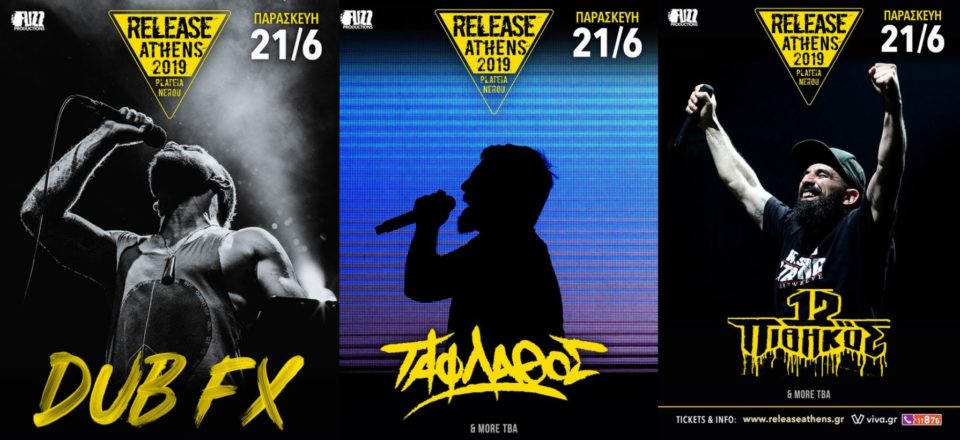 O Dub FX, ο κορυφαίος καλλιτέχνης της street art, και οι ΤΑΦ ΛΑΘΟΣ και 12ος Πίθηκος, δύο από τους σημαντικότερους και συνεχώς ανερχόμενους εκπροσώπους της εγχώριας hip–hop σκηνής, είναι τα τρία επόμενα ονόματα που θα πλαισιώσουν τους μεγάλους Cypress Hill στην εμφάνισή τους στο Release Athens, την Παρασκευή 21 Ιουνίου, στην Πλατεία Νερού.