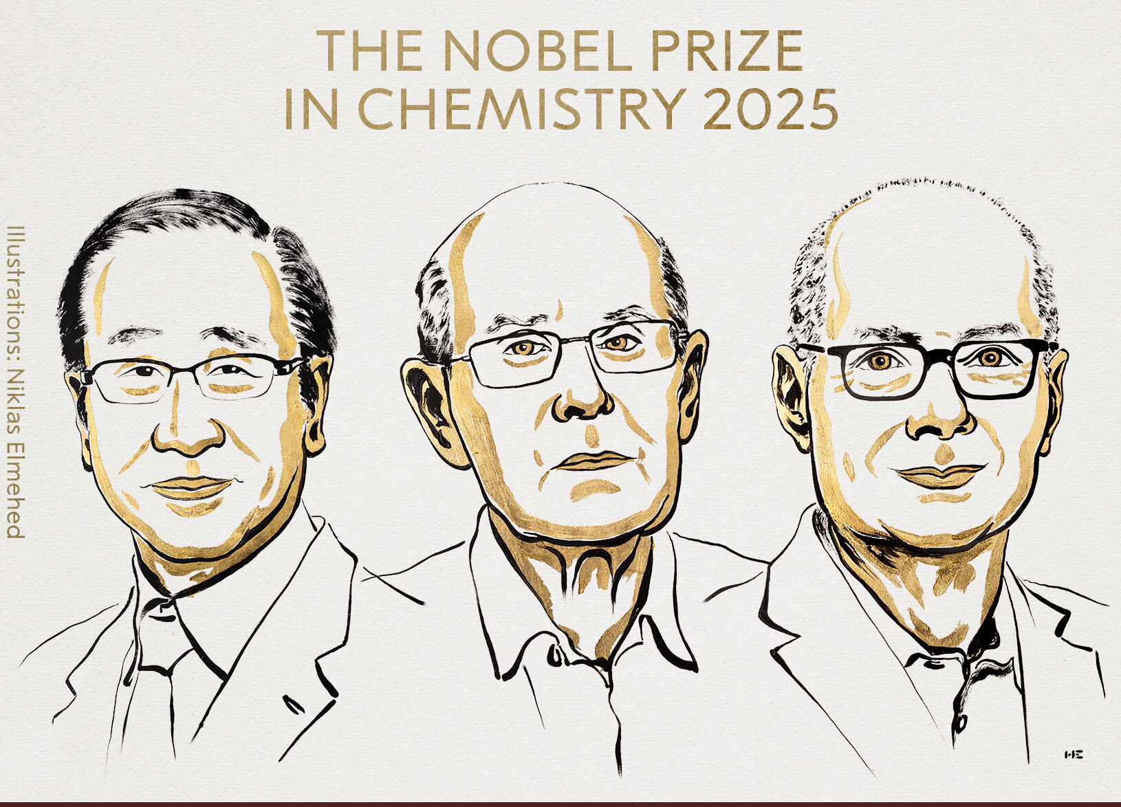 Οι επιστήμονες Σουσούμου Κιταγκάουα, Ρίτσαρντ Ρόμπσον και Όμαρ Γιάγκι κέρδισαν το φετινό βραβείο Νόμπελ Χημείας για την «ανάπτυξη μεταλλο-οργανικών πλαισίων», όπως ανακοίνωσε σήμερα η Βασιλική Σουηδική Ακαδημία Επιστημών.