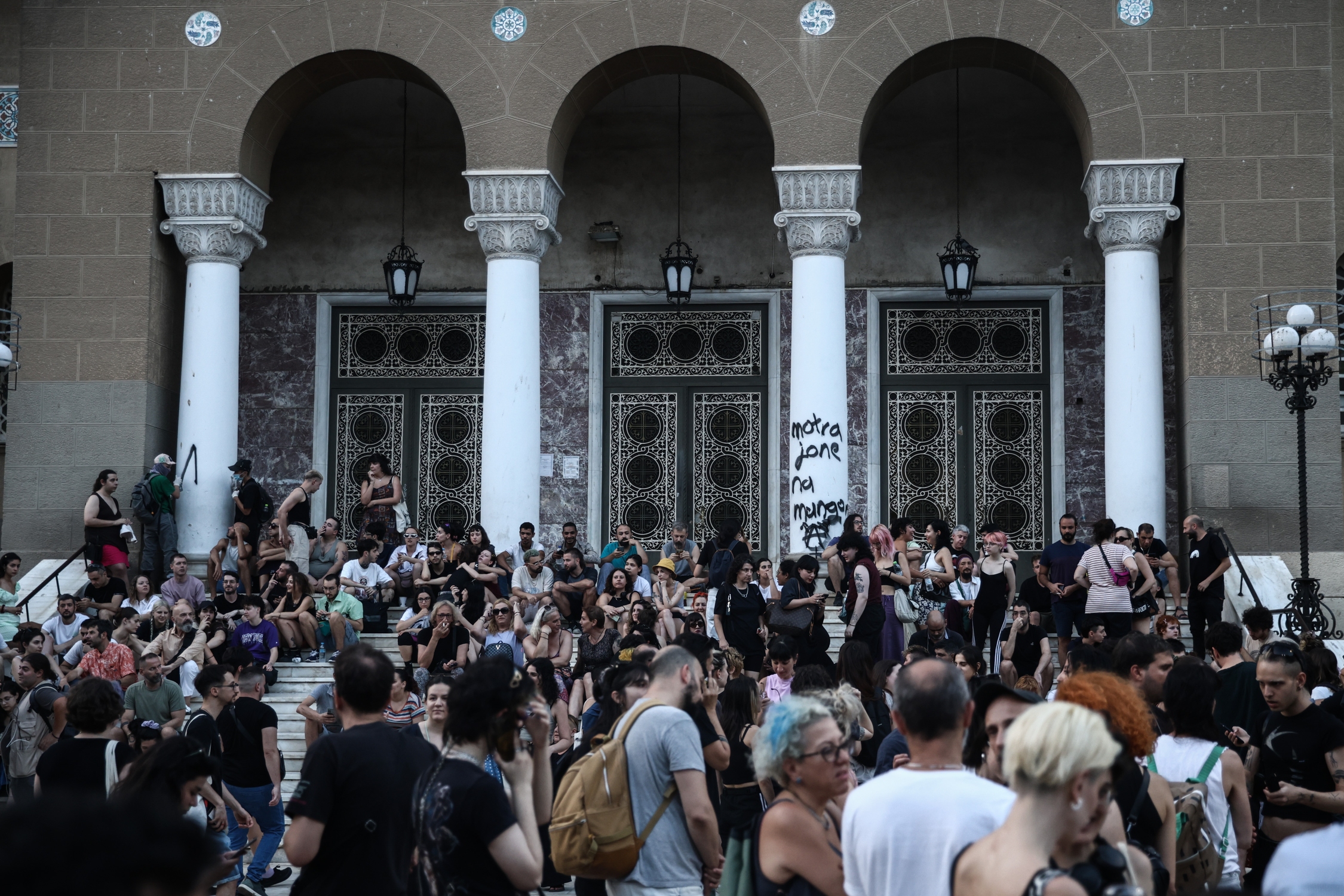 Πλήθος κόσμου βρέθηκε χθες το απόγευμα στην πλατεία του Αγίου Παντελεήμονα για να κατευθυνθεί στη συνέχεια στην οδό Φυλής έξω από το διαμέρισμα της Κουβανής τρανς μετανάστριας που βρέθηκε άγρια δολοφονημένη στο διαμέρισμά της.