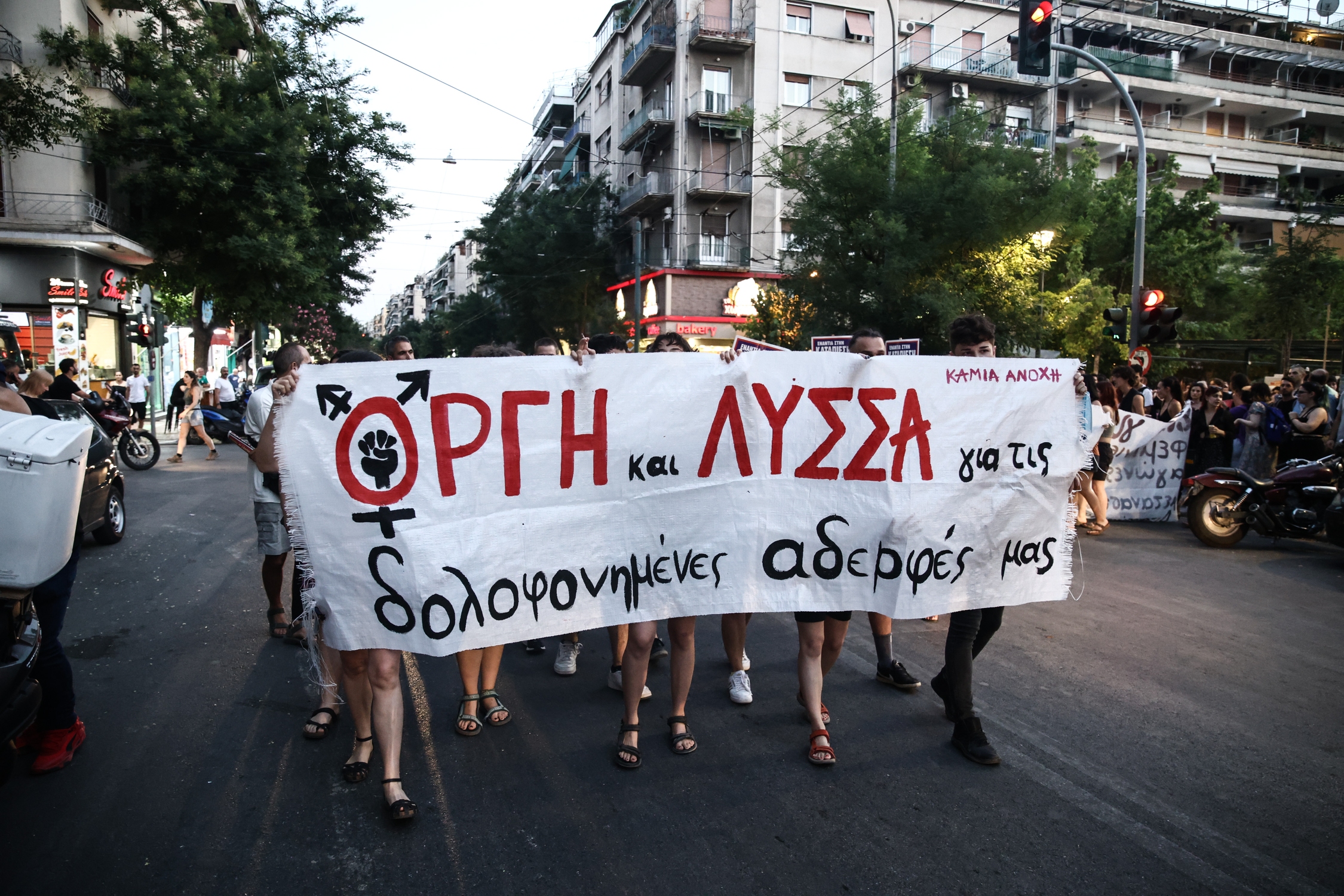 Εκατοντάδες πολίτες και μέλη φεμινιστικών και ΛΟΑΤΚΙ+ συλλογικοτήτων συμμετείχαν στη διαμαρτυρία που έγινε χθες στον Άγιο Παντελεήμονα για τη δολοφονημένη Άννα.