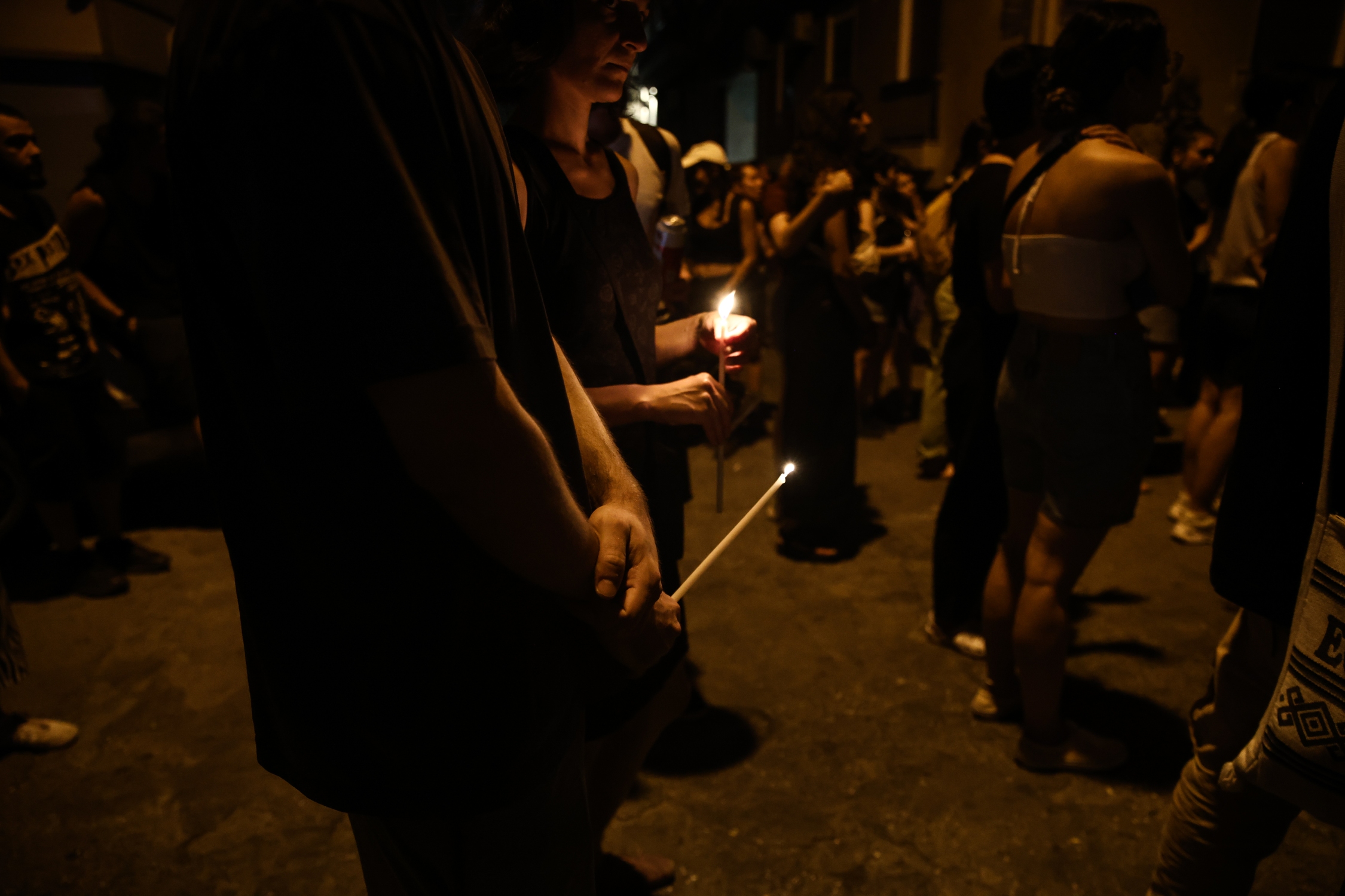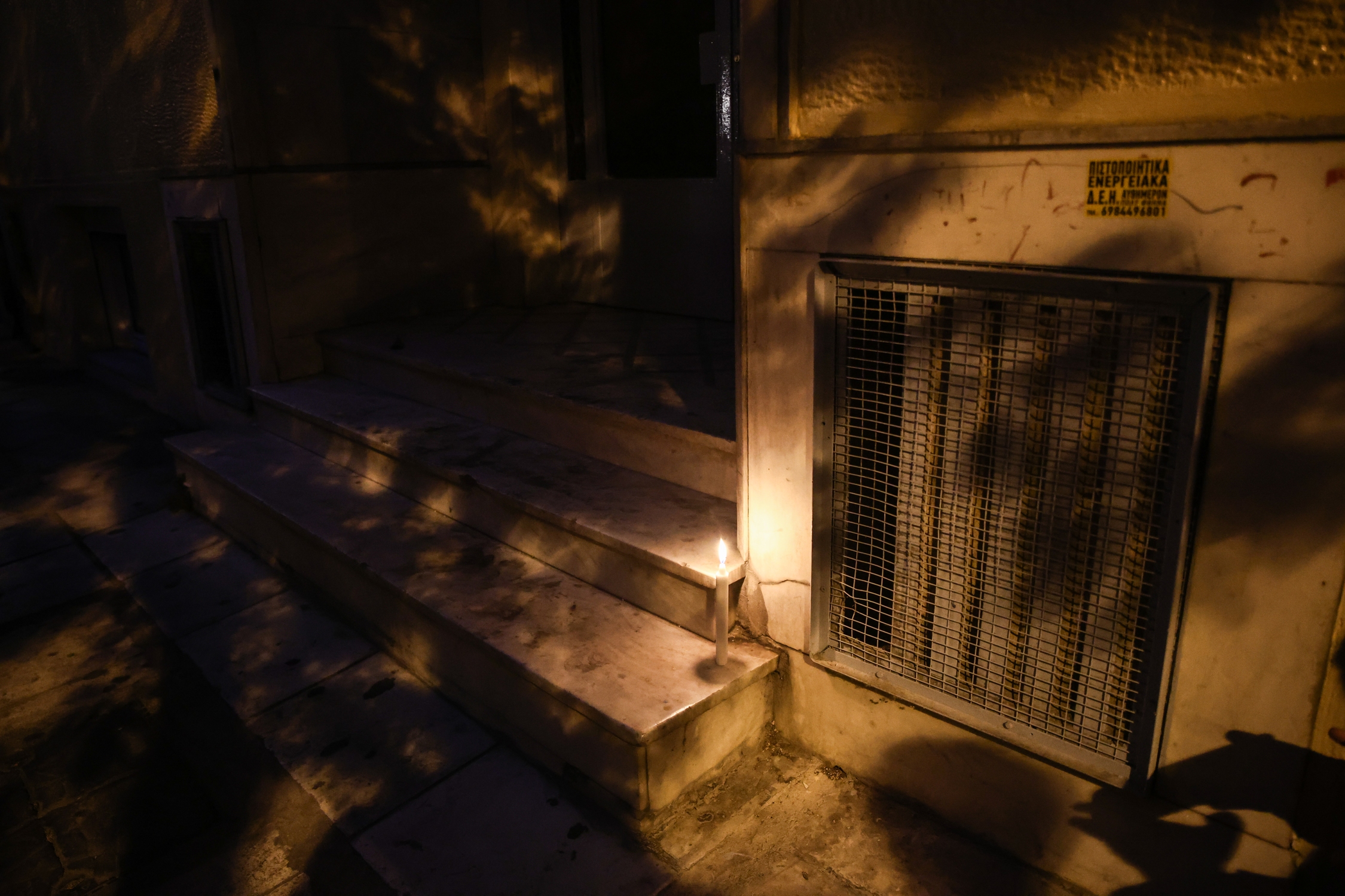Έξω από την πολυκατοικία που σημειώθηκε η άγρια δολοφονία, οι συγκεντρωμένοι τοποθέτησαν ένα κερί και κράτησαν ενός λεπτού σιγή.